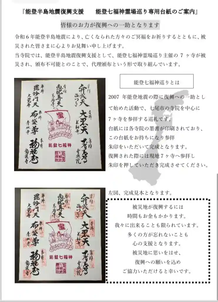 能登七福神の7ヶ寺が被災され、現在頒布不可能という状況につき、…