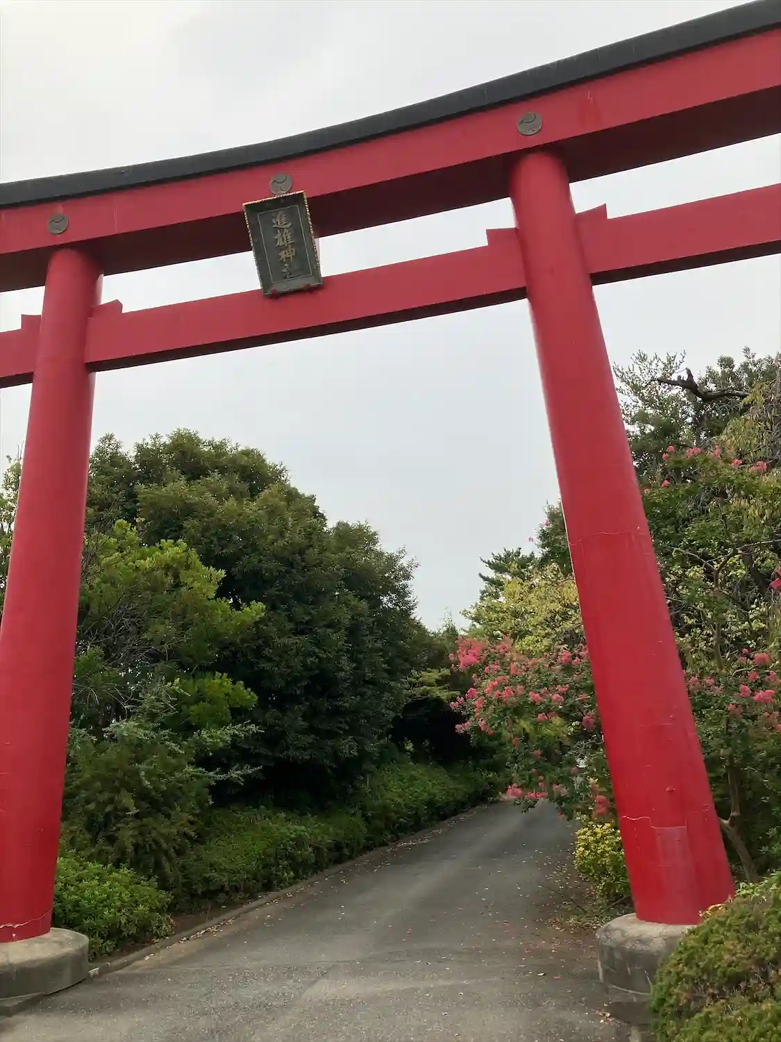 鳥居。道に面しています。鳥居のすぐ近くに駐車場がありました。