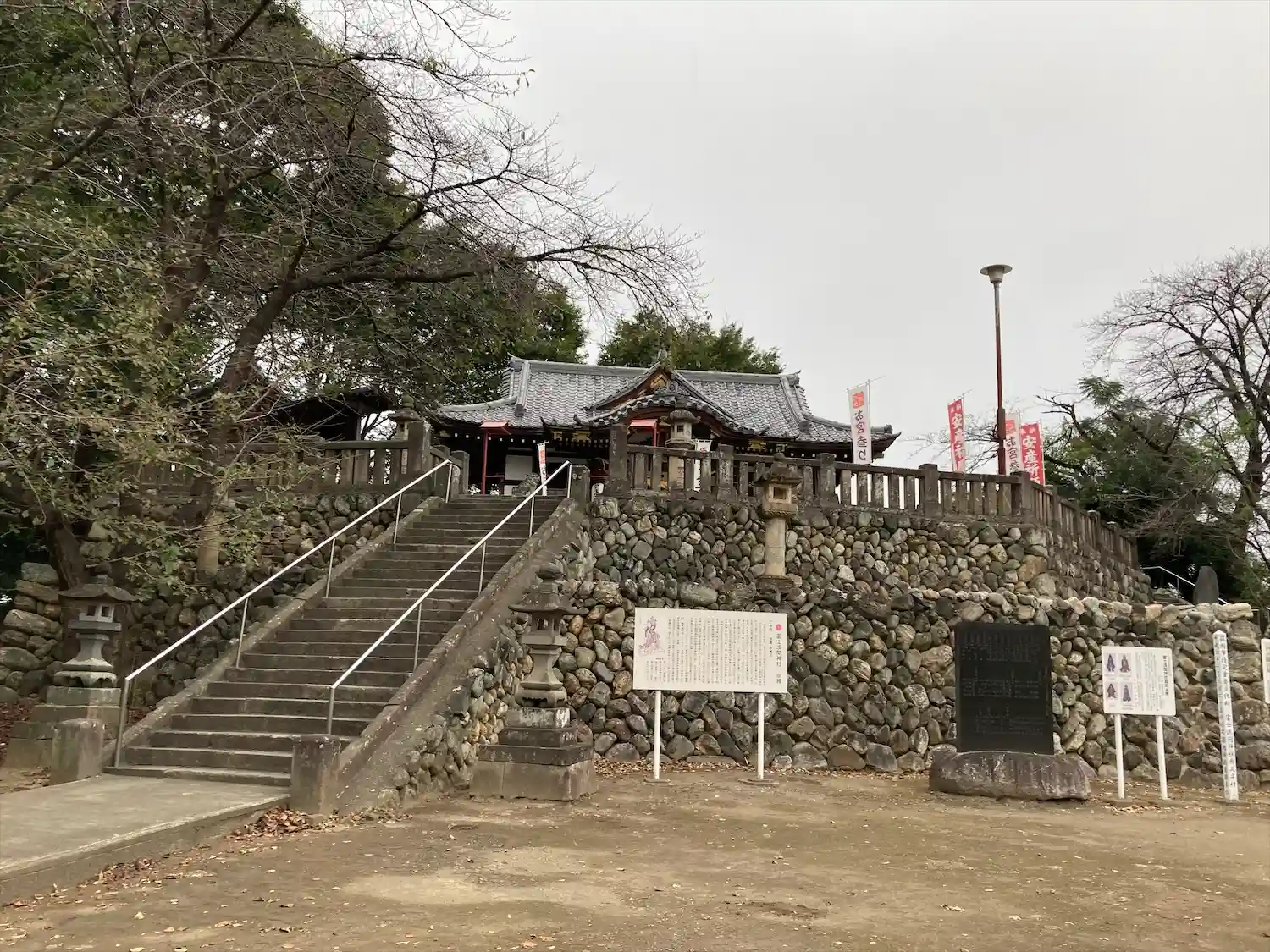 石垣の高台に社殿