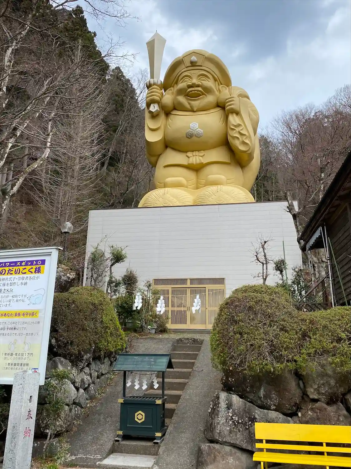 妙義山にご鎮座する神社「中之嶽神社」運気アップ、元気・やる気がアップするパワースポット。赤い鳥居をくぐる前から、金の巨大像が見え、その背後には轟岩が……迫力満点。宮司さんも凄い楽しくて御朱印が達筆!と見所満載です。天井絵の龍が素晴らしく「しあわせ」の文字が隠れているので探してください。轟岩に続く階段がすごくて私の体力は全て持っていかれましたが眺めは最高です。