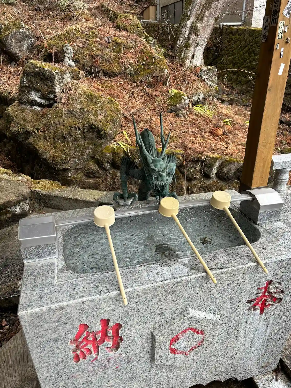 階段前の手水舎にお不動様🙏