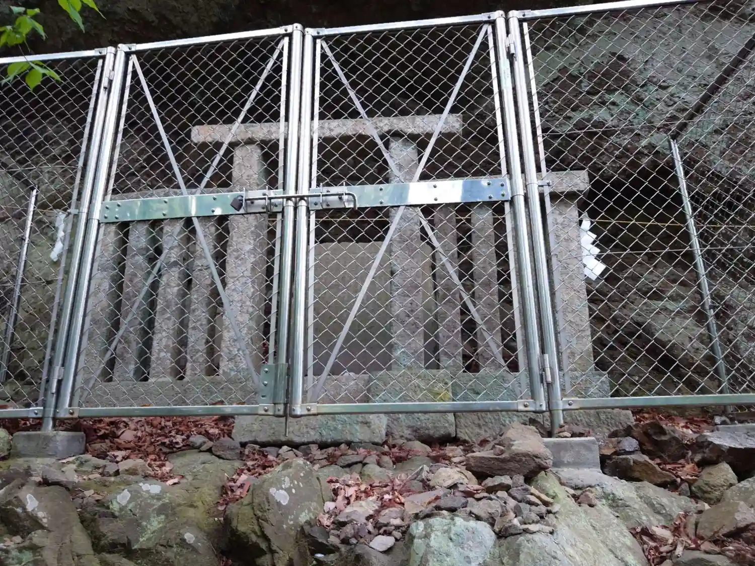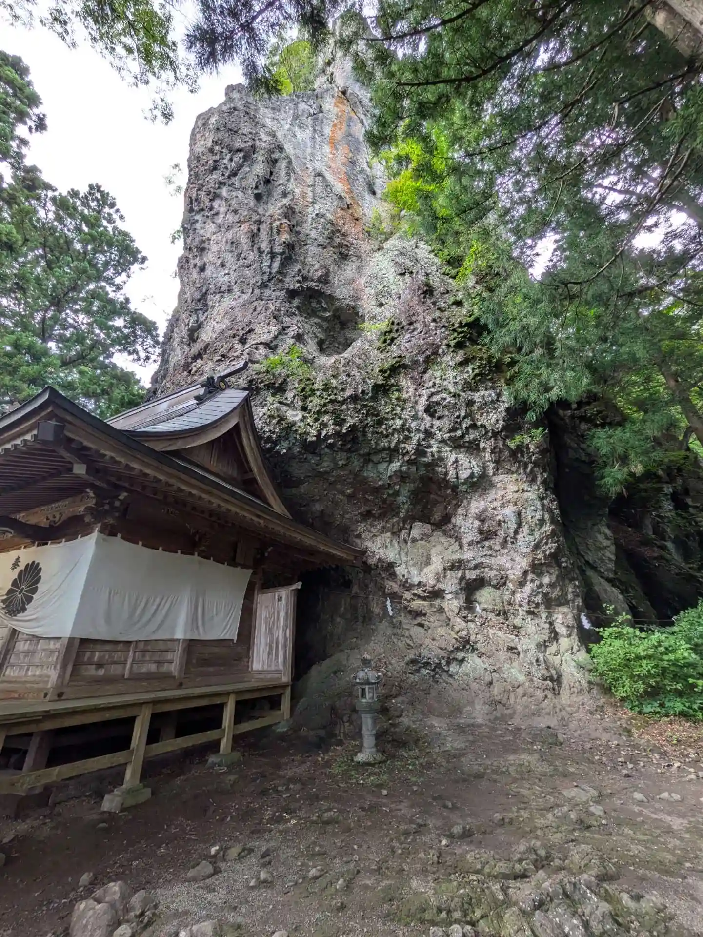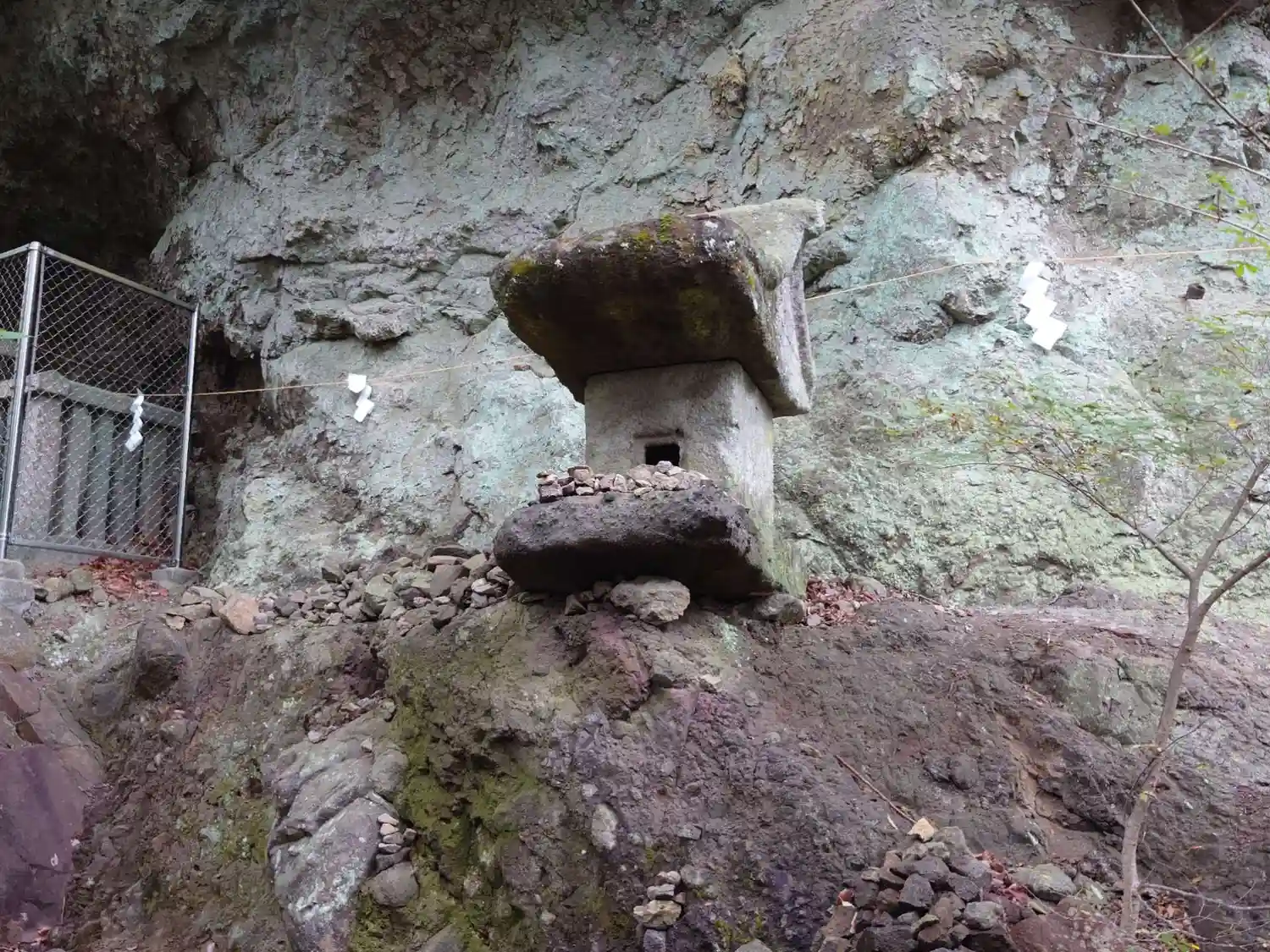 拝殿の左側はこんな感じ。岩山が迫っている。小さな祠あり。
