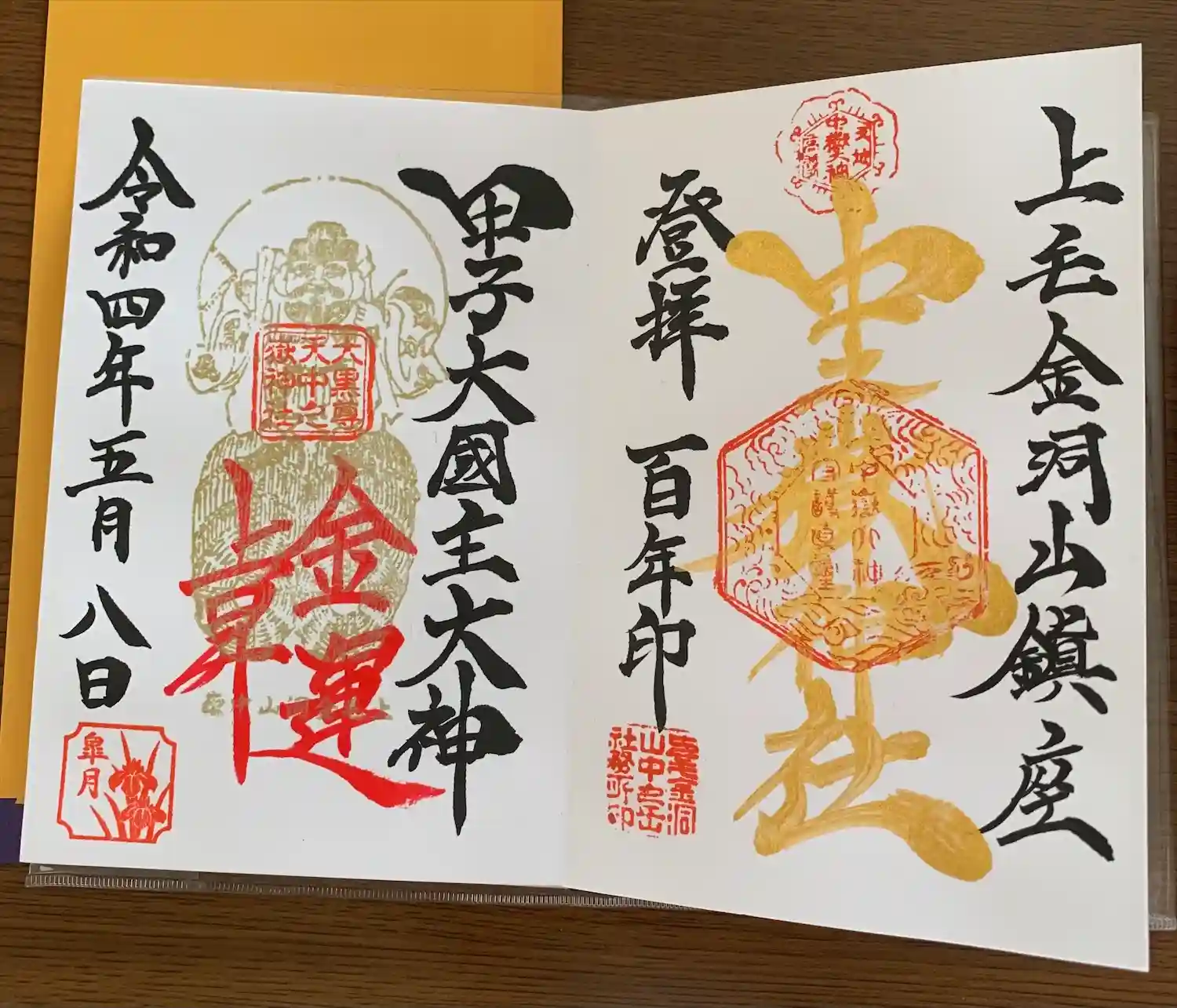 中之嶽神社と甲子大国神社の御朱印を見開きで戴いてきました