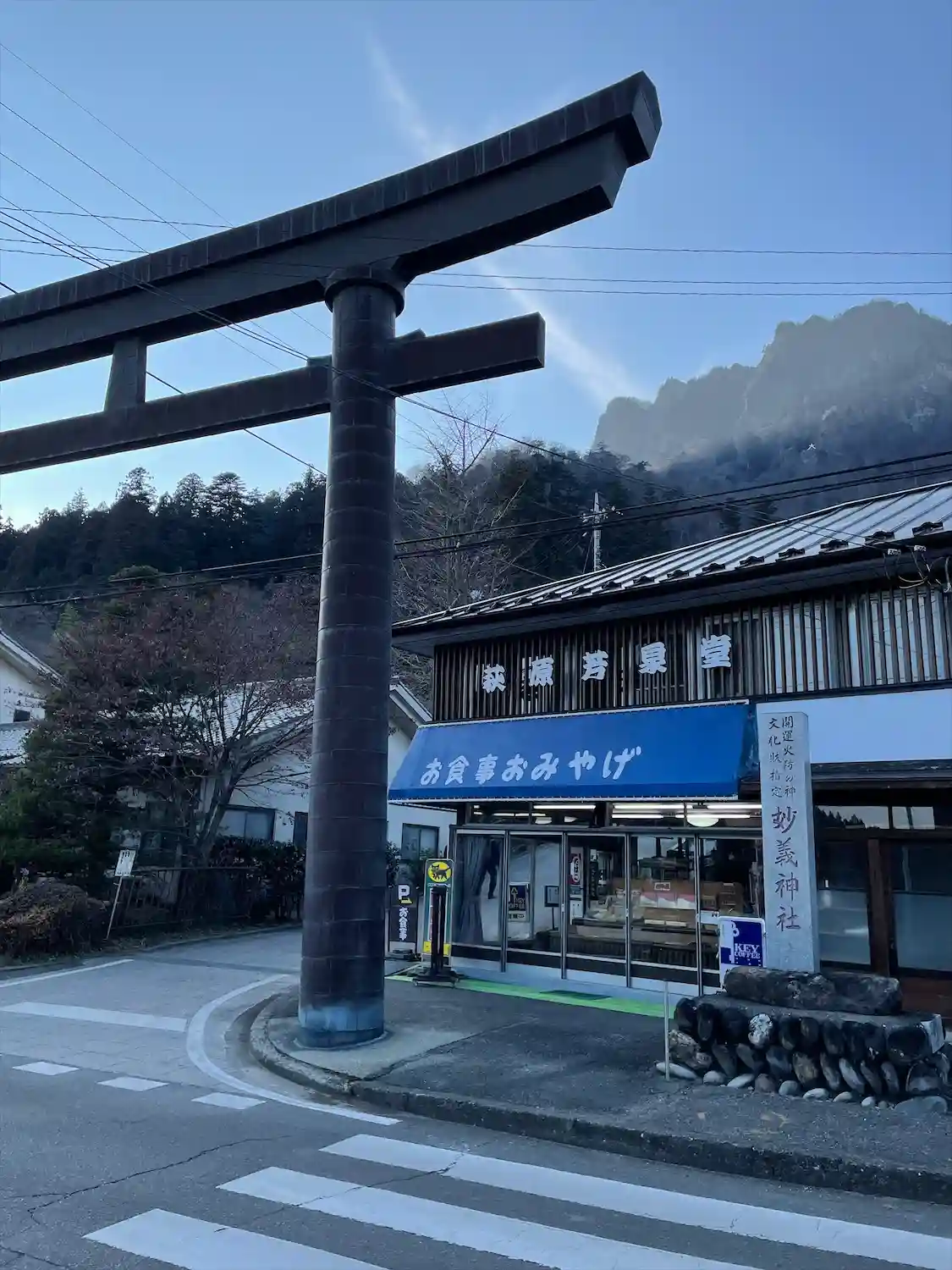 背景に妙義山が映える格式高い神社でした