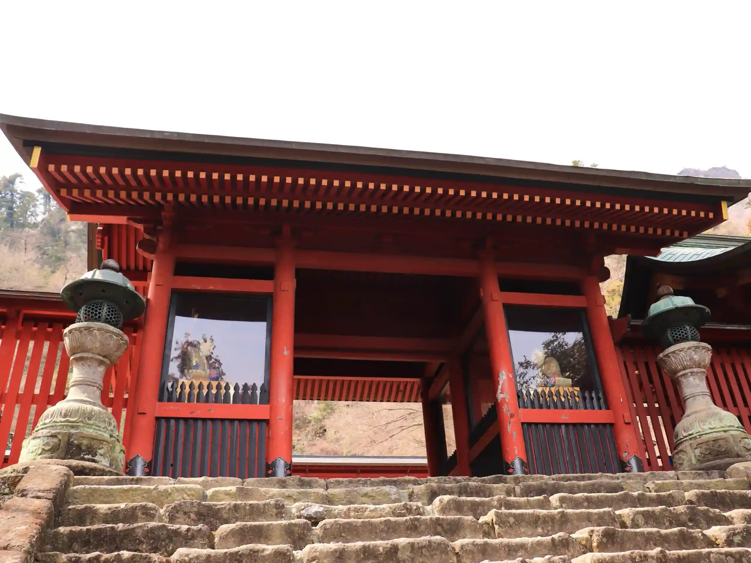 参道を歩きながら次々と目にする荘厳な建造物や背後にそびえる妙義山が厳かな空間を作り出している素敵な神社でした。