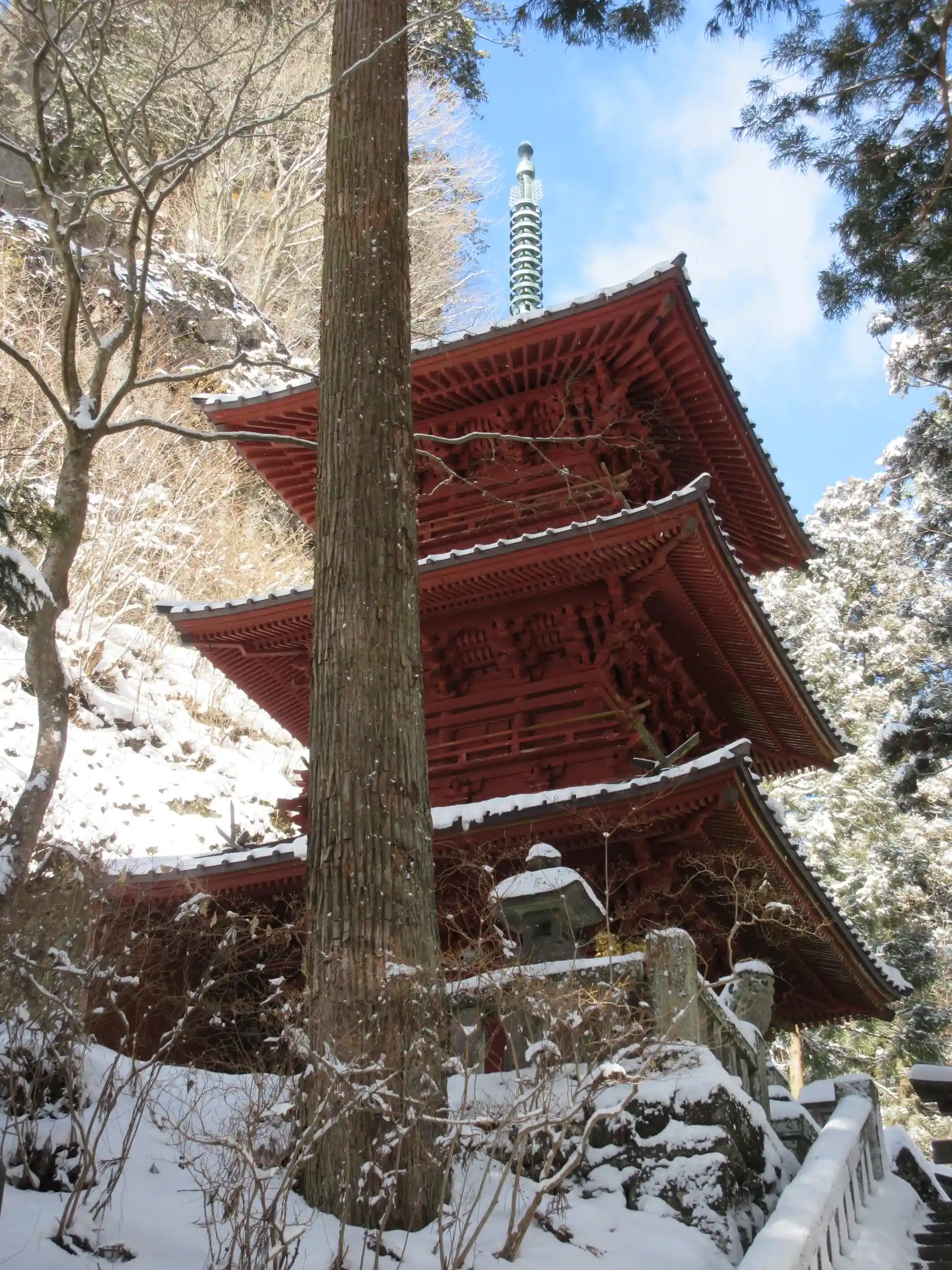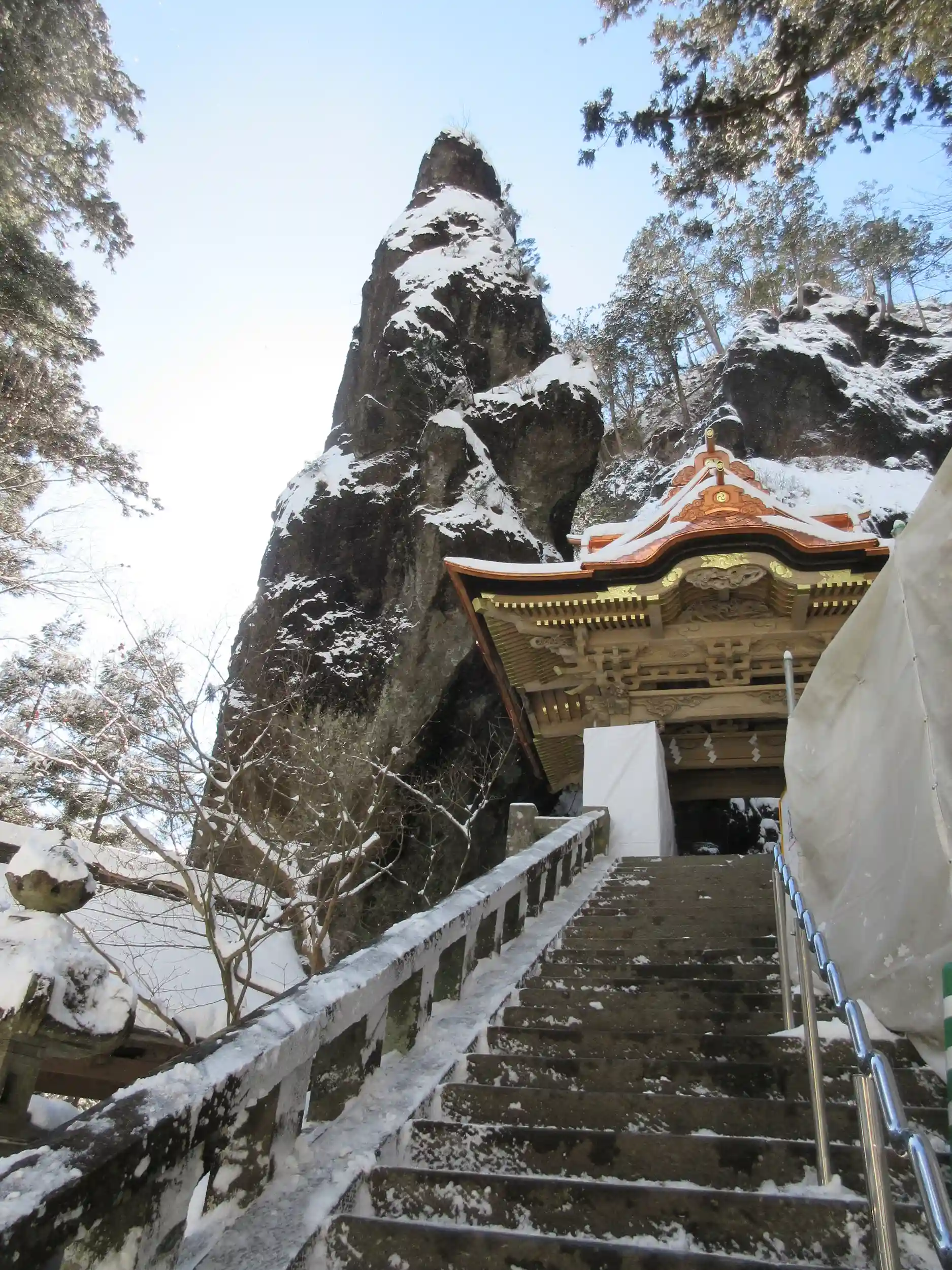 3番目はお目当ての榛名神社です😊雪が積もる季節に参拝したかったのは、写真を見ていただければわかると思いますが、絶景の「瓶子の滝」です😝凍っている滝(氷瀑ひょうばく)を見るのは初めてで感動しかありませんでした😊また、神社の修復も終わりに近づいてきて完成が楽しみです🥰