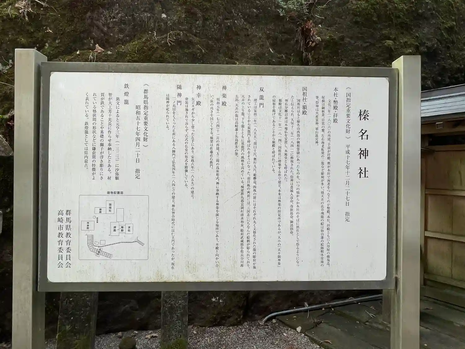 群馬県高崎市に建つ神社。赤城山・妙義山と共に上毛三山の一つとされる榛名山(はるなさん)の中腹に建つ…