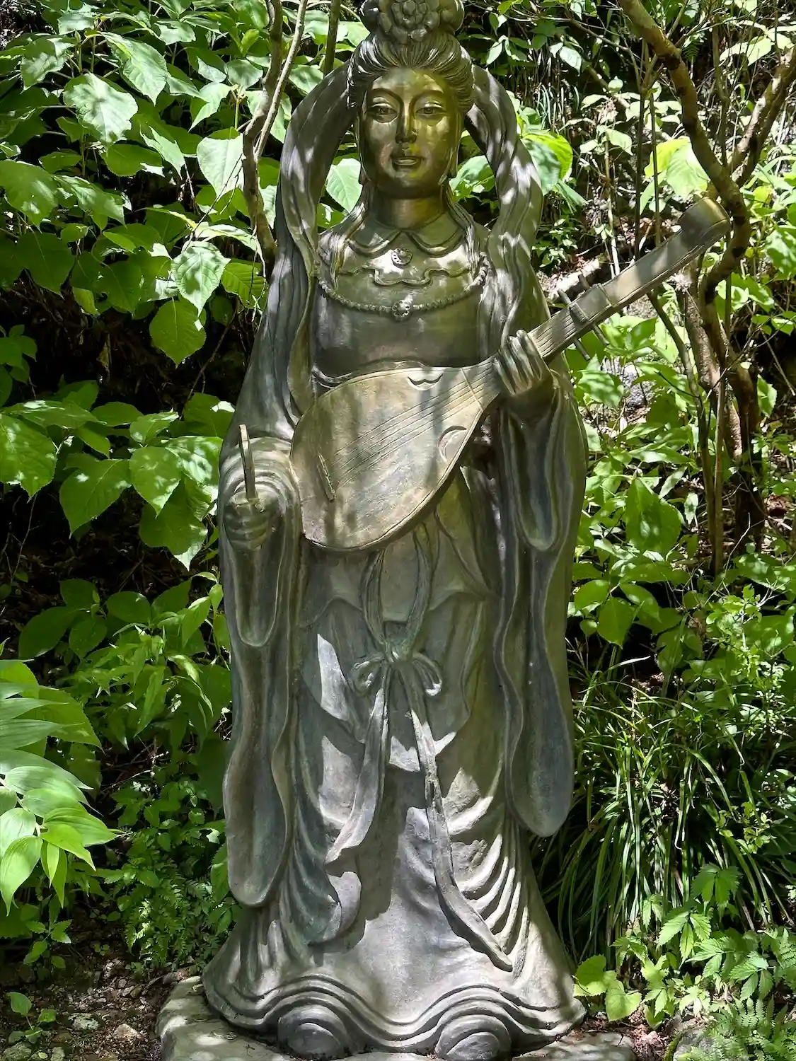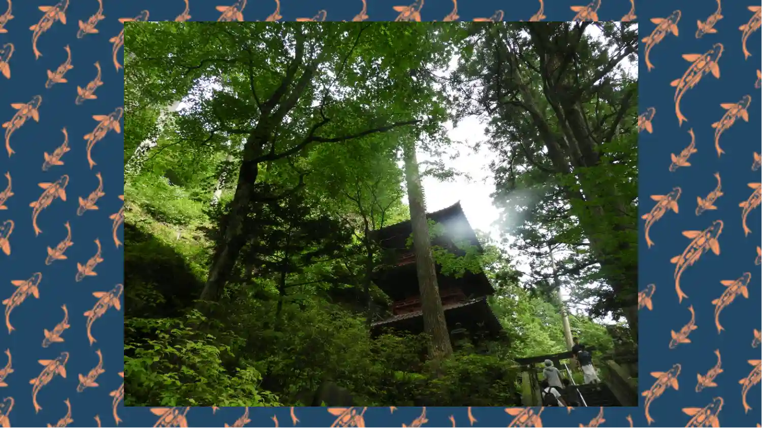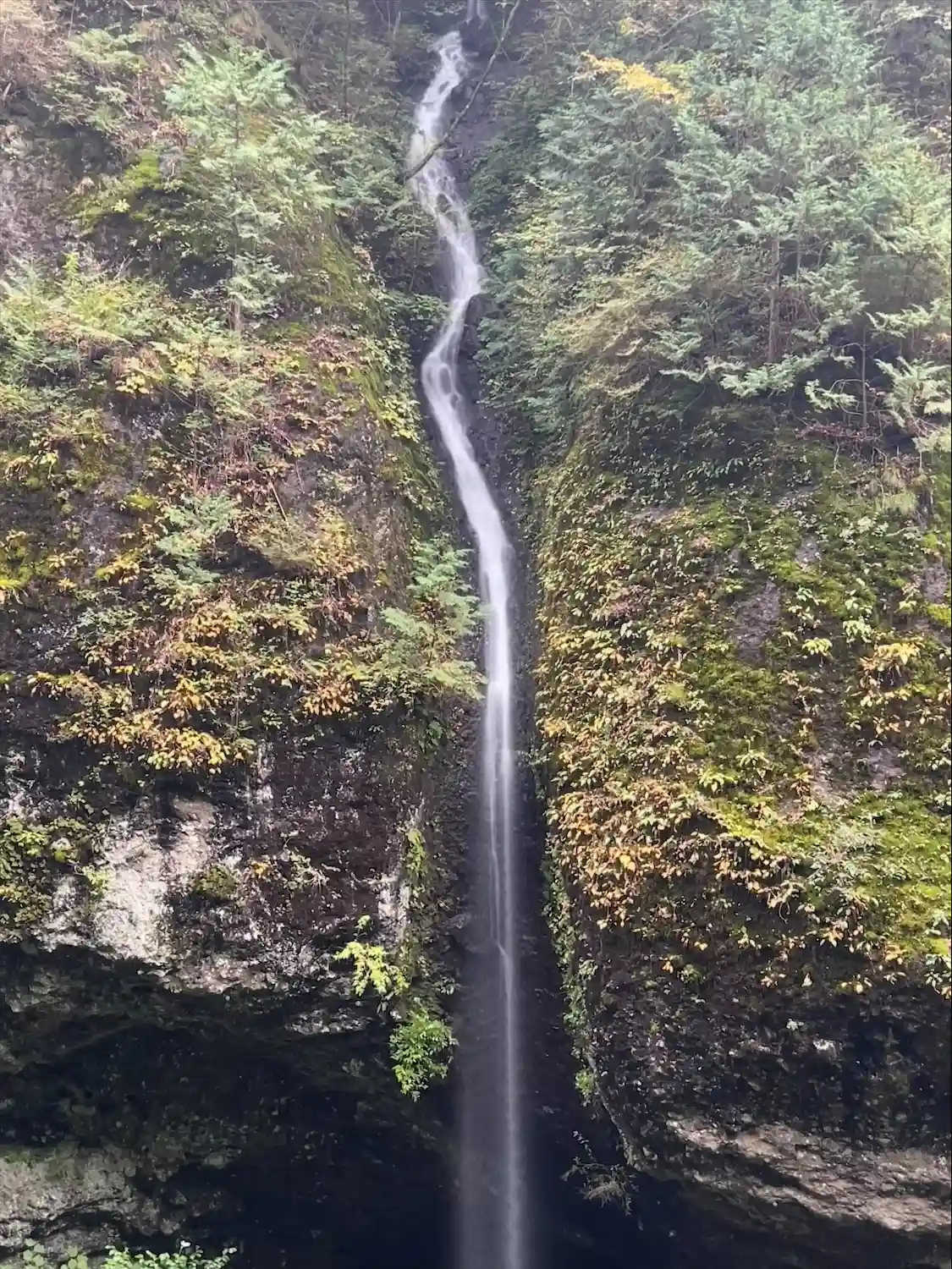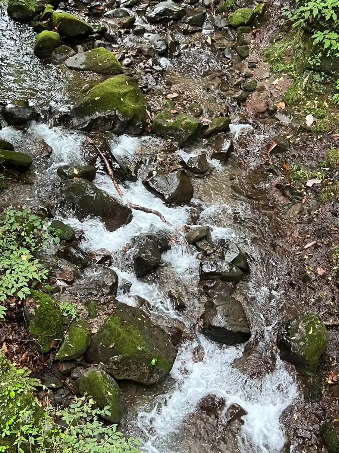 ゆるやかな登りの参道は横に流れる川の音と木々や苔むした岩に癒されながら進めます。…