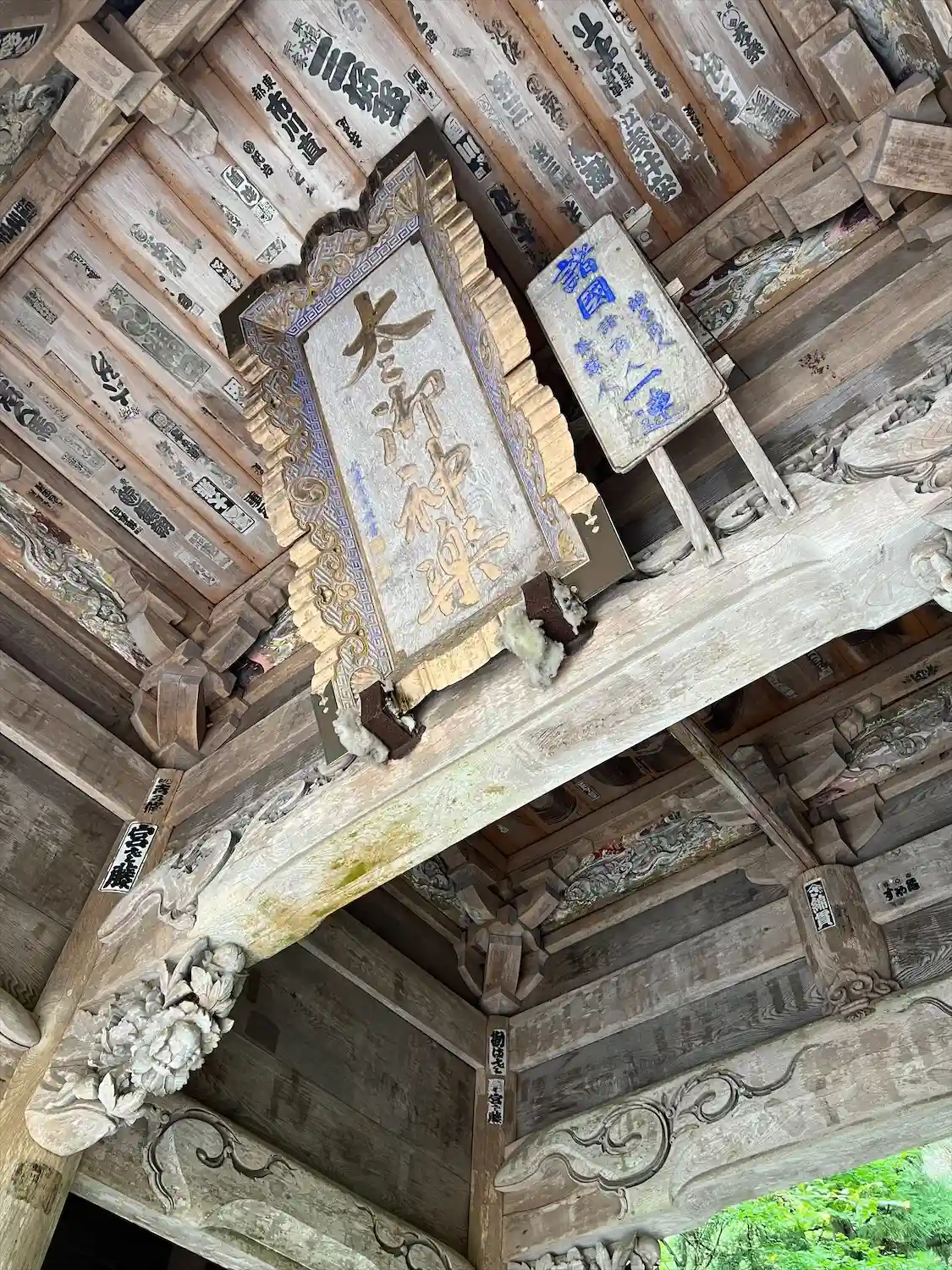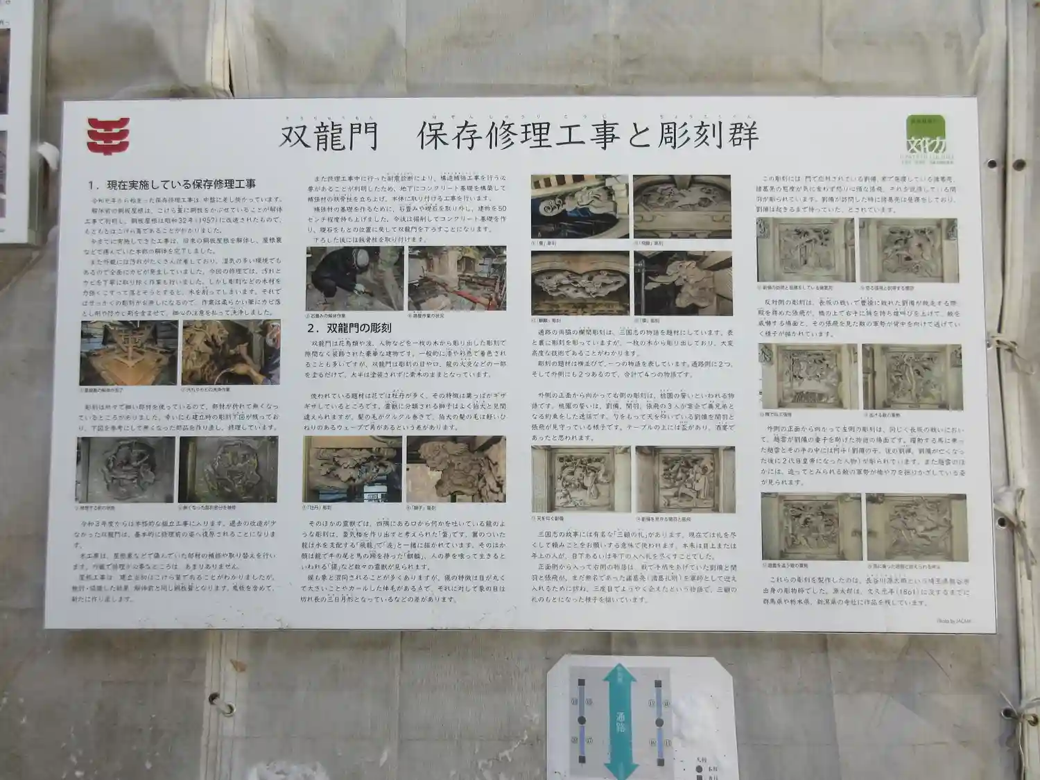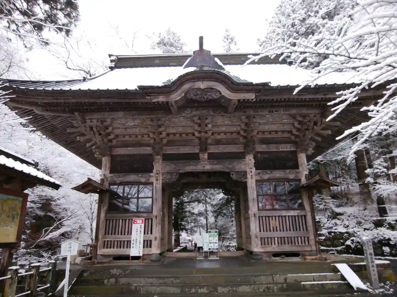 重要文化財の一つです。安政2年(1855年)の建立で、入母屋造銅板葺きの四脚門。竜の彫刻が施されていることから双龍門と呼ばれています。...との事ですが、残念ながら修繕工事中でした(´;ω;`)