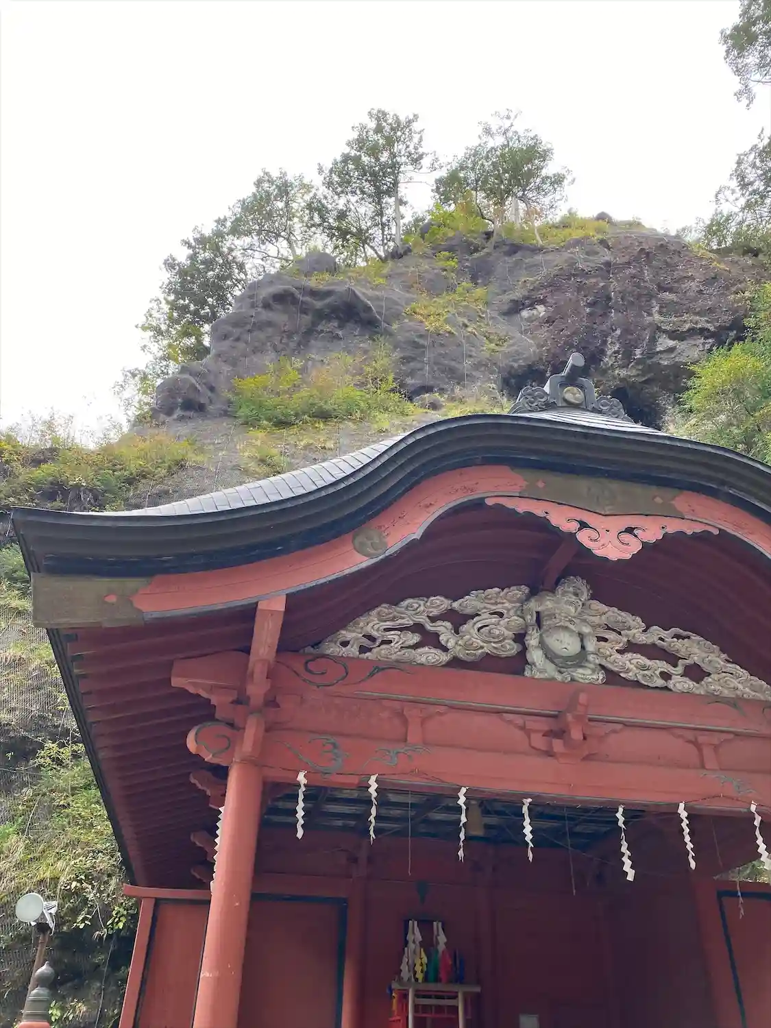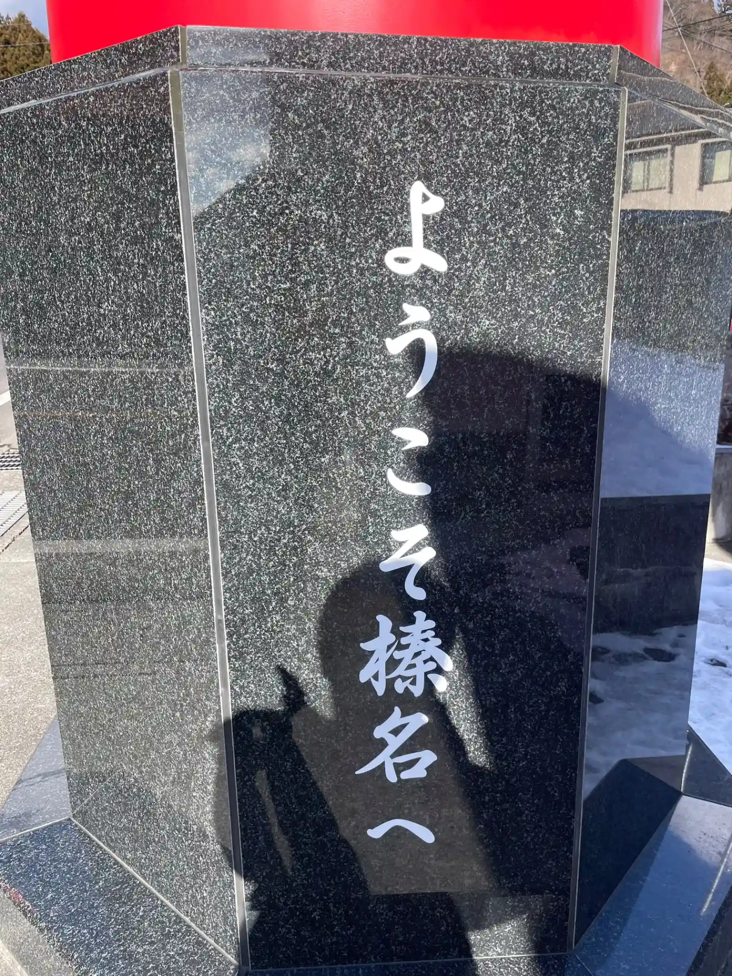 榛名湖を通り山道を上がると赤い⛩が……。