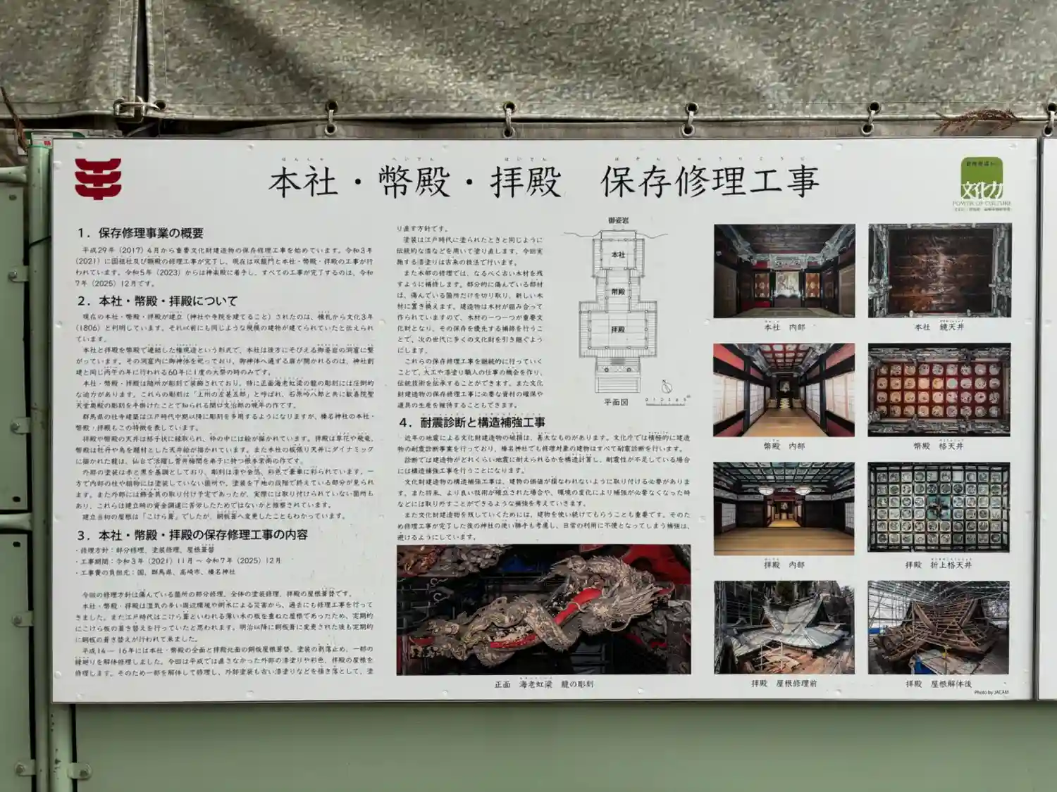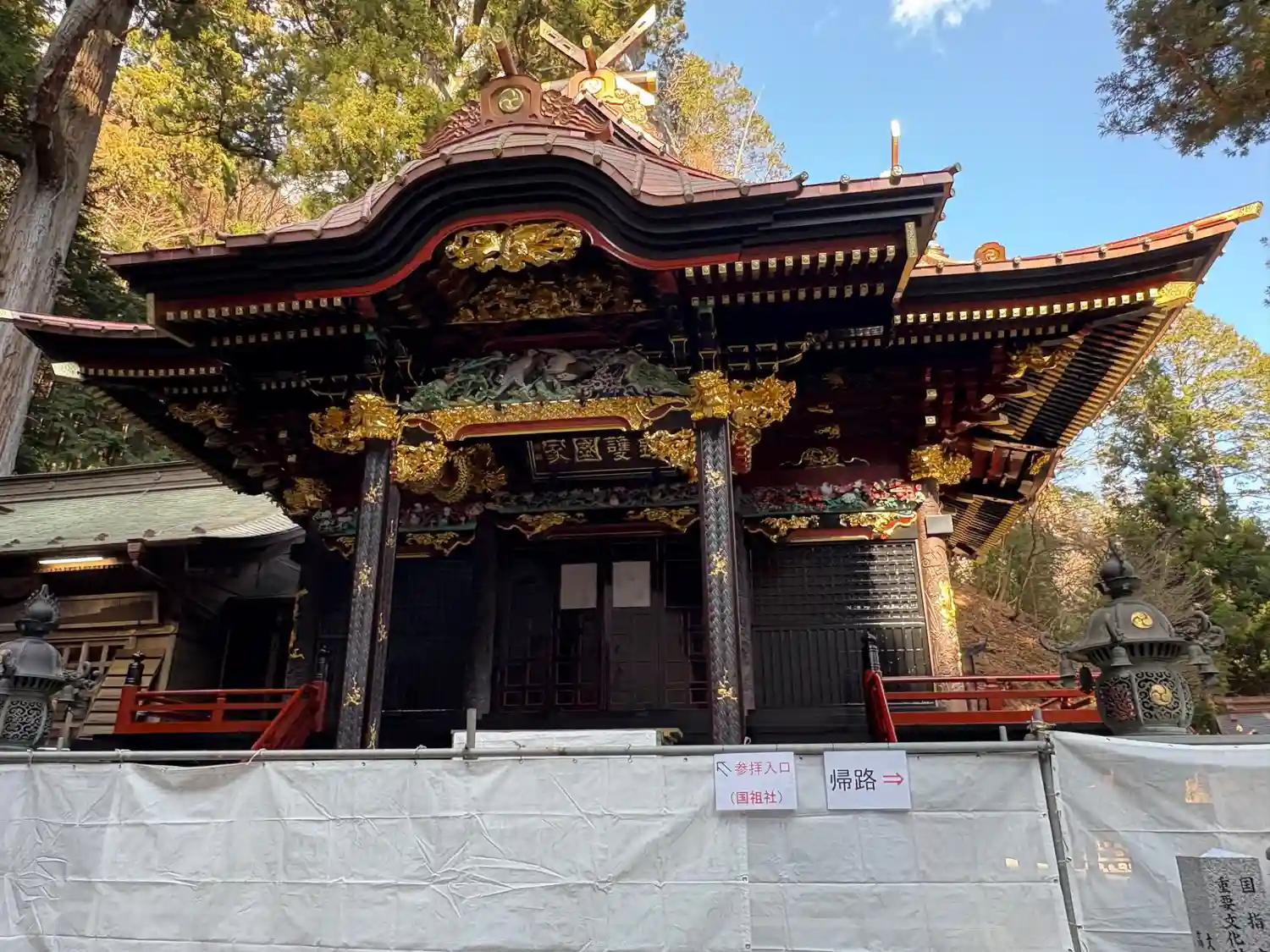 本殿と双竜門は改修工事中で観れませんでした。