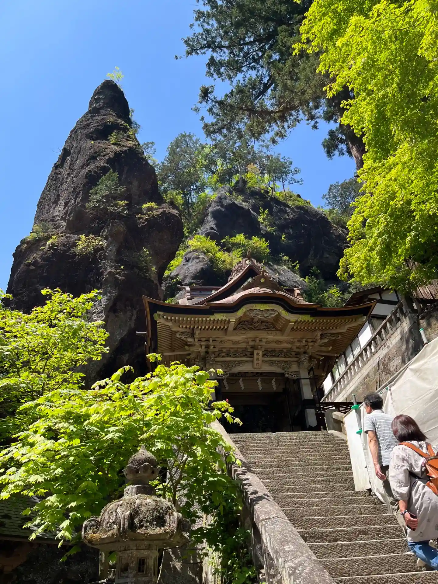 岩が御神体の榛名神社、迫力のある岩山にそって進む参道でした。