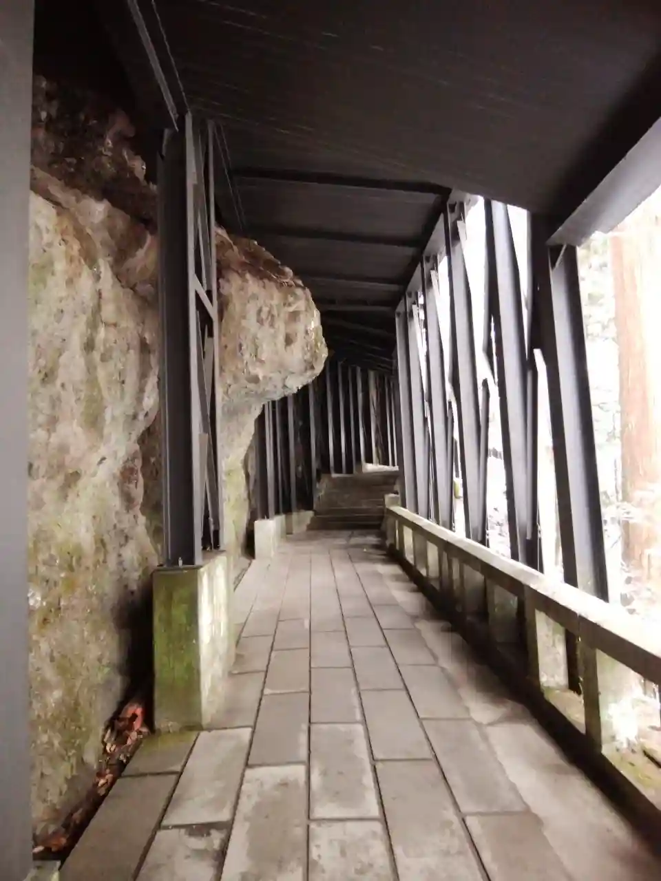 回廊に巨岩がせり出しています。