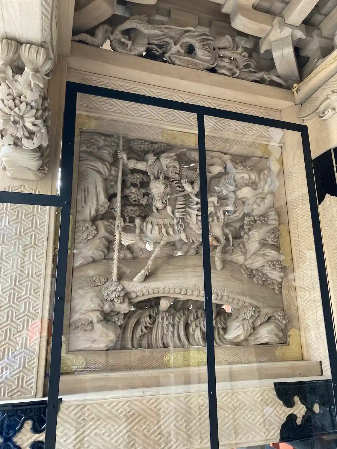 七福神が境内にいらしたり、龍の彫り物…