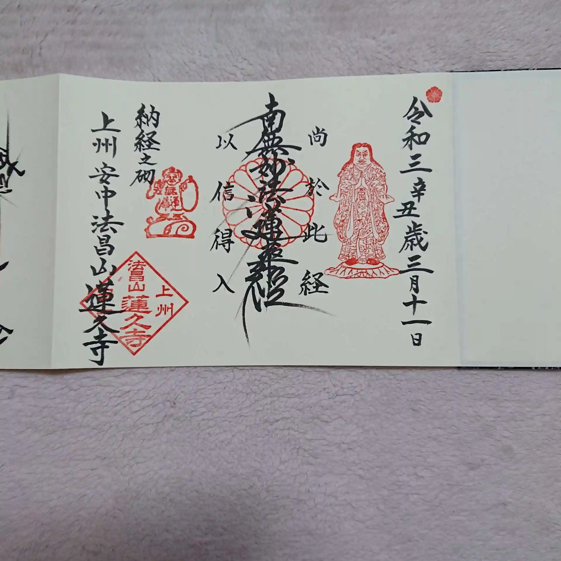 群馬県安中市の蓮久寺です。御降誕800年の御首題を郵送対応して頂けることになり対応して頂きました。