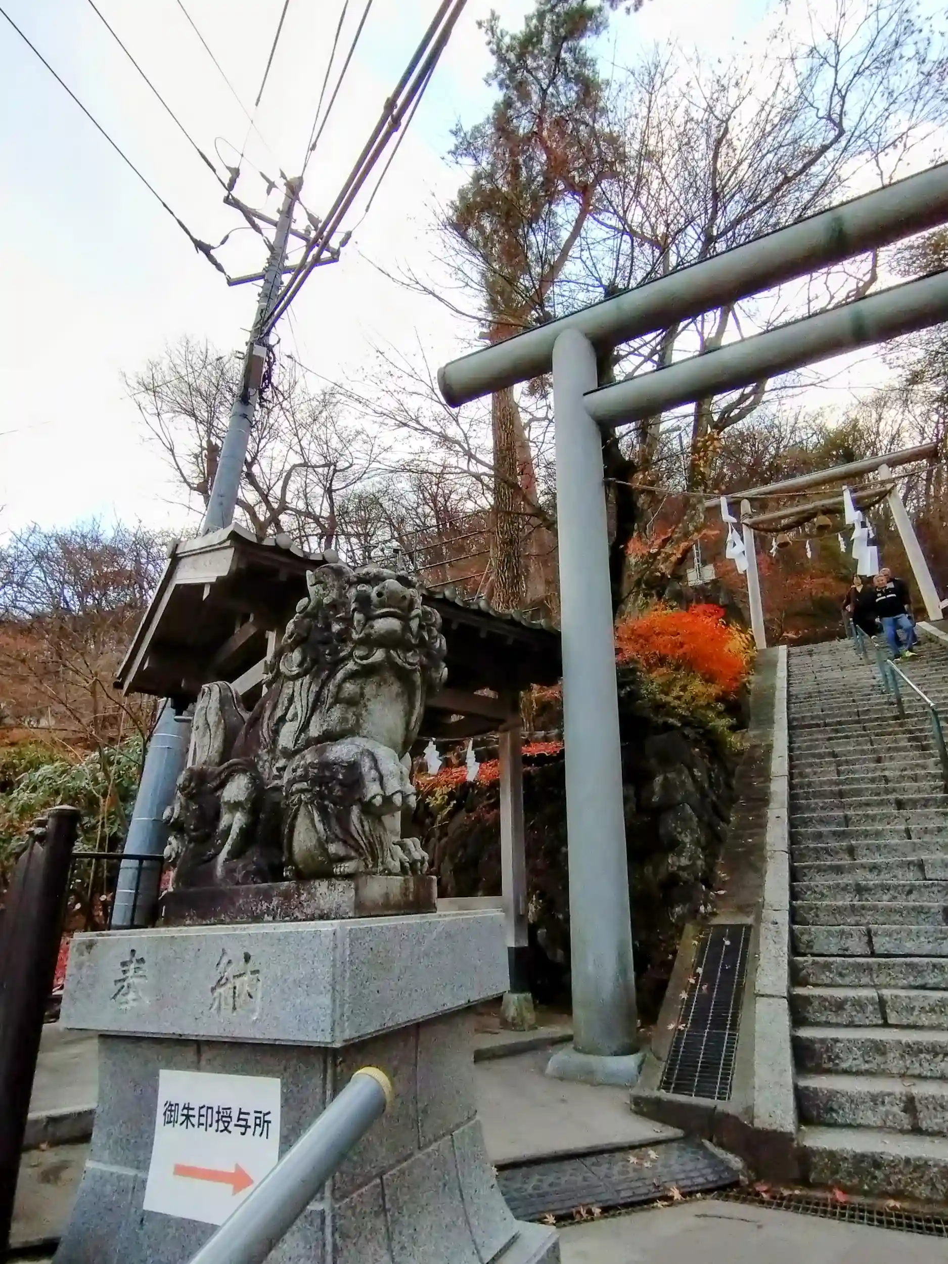 晩秋の静かな山の温泉を堪能したので、ぜひお詣りしなければ…と宿の方に送っていただきました(石段上部に😅)