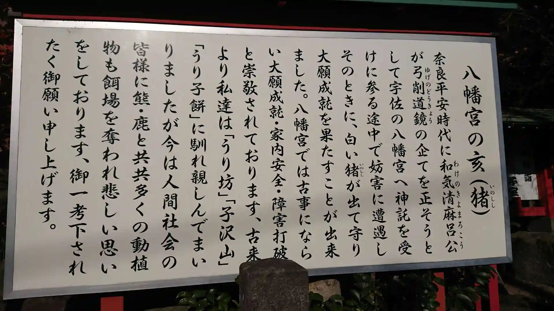 七福神や干支参り、登竜門や出雲大社と多くの末社があり、あちこち標語だらけで面白いです。干支の岩はそれっぽく見えます。