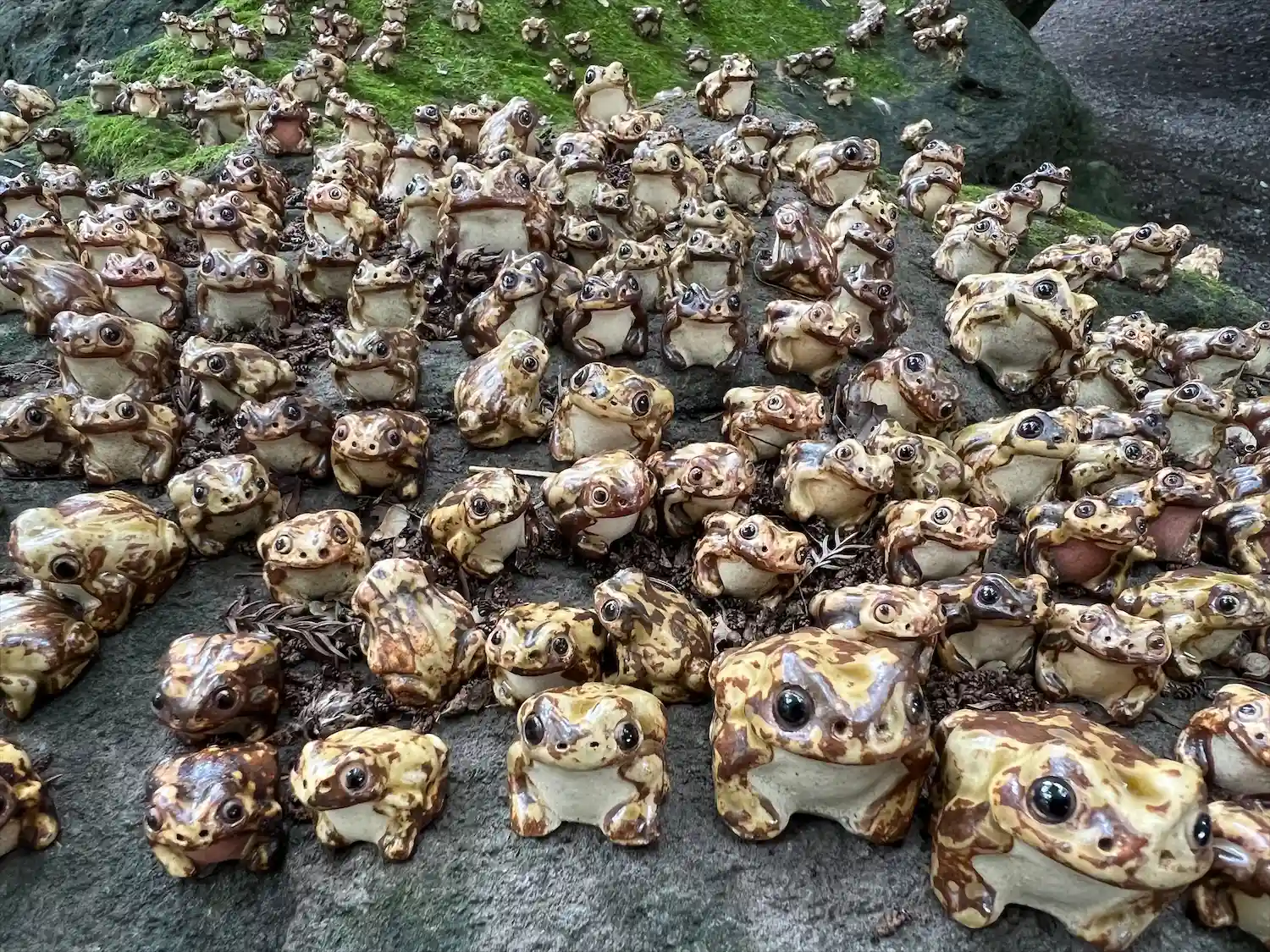 岩の上にカエルが沢山奉納されてました。