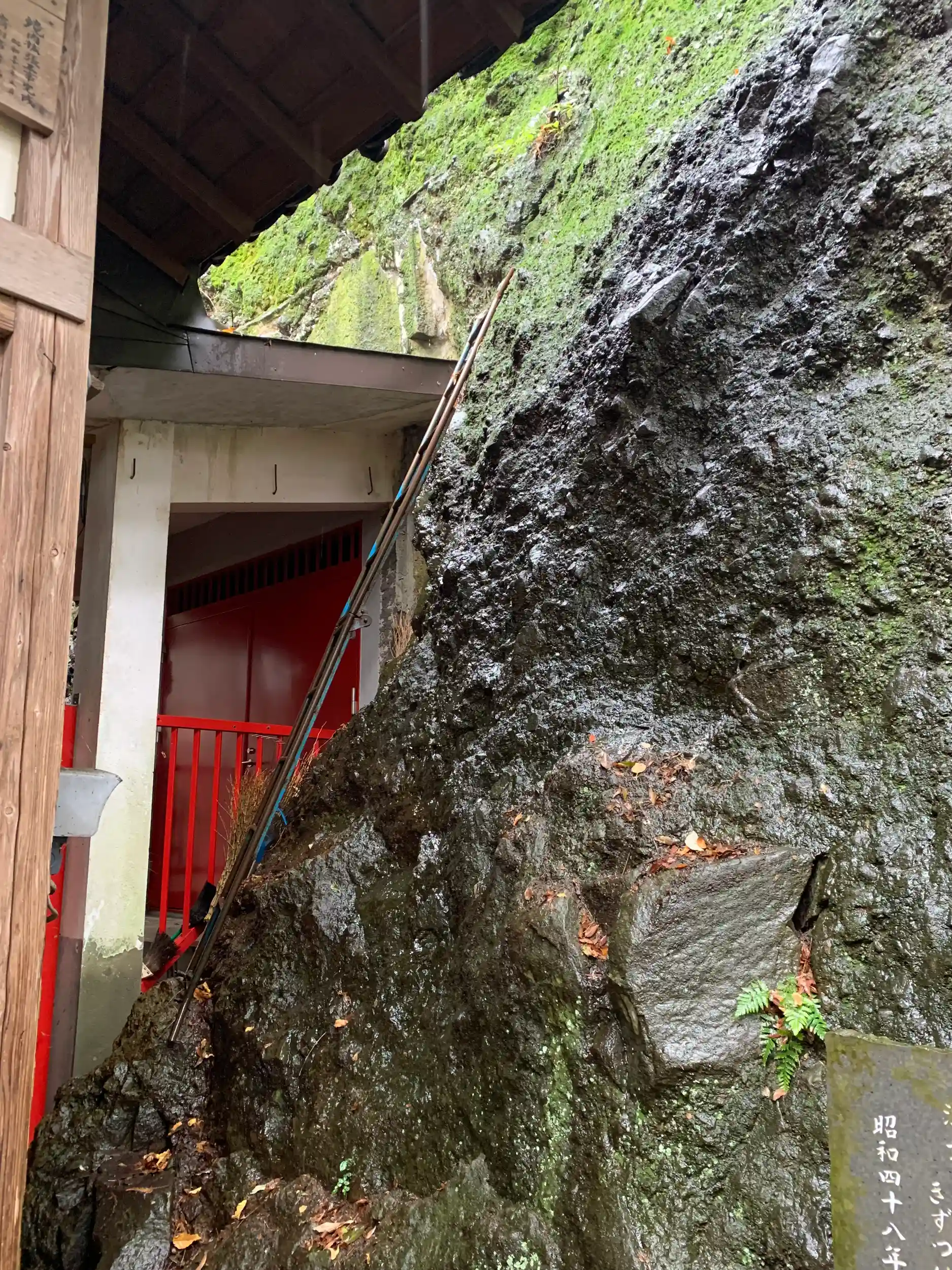 お堂の裏の岩山にある岩窟内には国の重文に指定されている不動明王立像が安置されています。