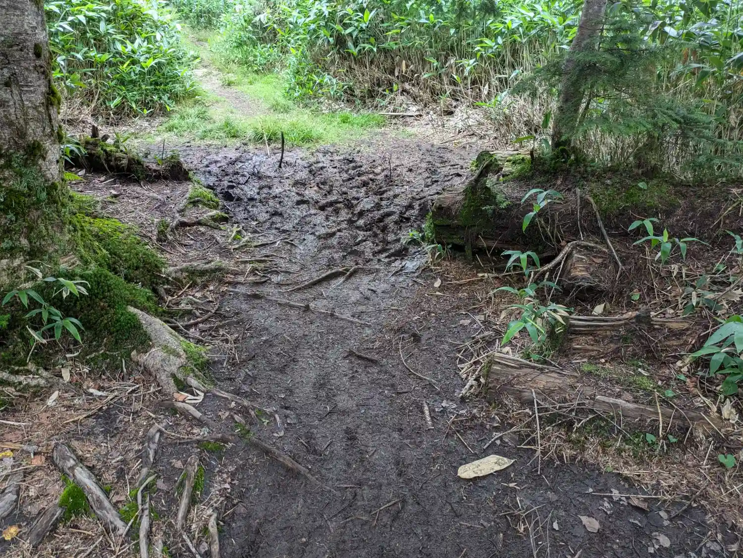 最近のゲリラ豪雨で、泥濘んでますので、登山靴、ポール(杖)、安全手袋(鎖場)は必需品です。