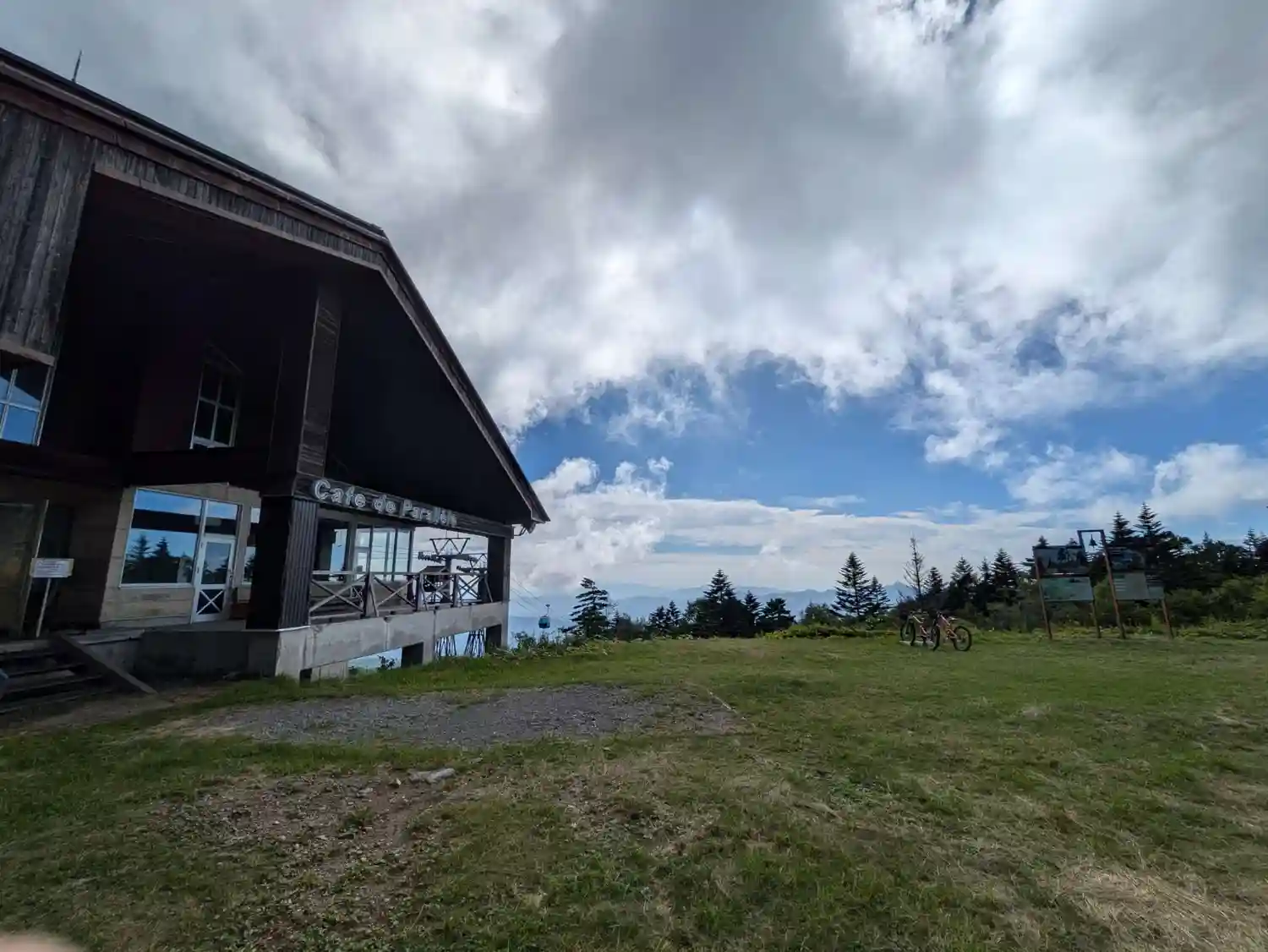 山頂午前11時頃着。昼食のランチパック気圧でパンパンおかげで潰れなかった。ゴンドラ最終午後3時半なんで早目に下山します。約45分休憩。