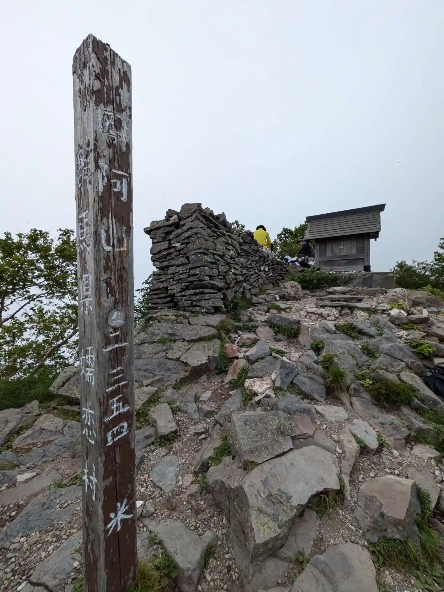 四阿山は白山信仰の霊山で、古くは修験者が参拝していました。 山頂には「信州祠」と「上州祠」の2つの祠があります。どちらも白山大権現を祀っており、風除けの岩に囲まれています。