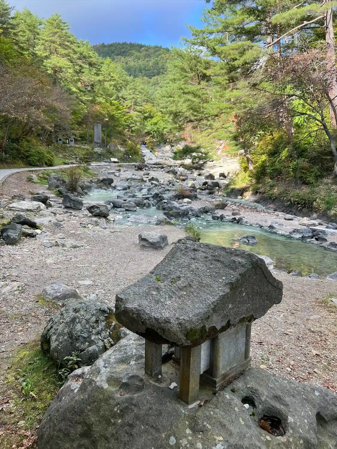 近くを流れる温泉と紅葉がとても良かったです。