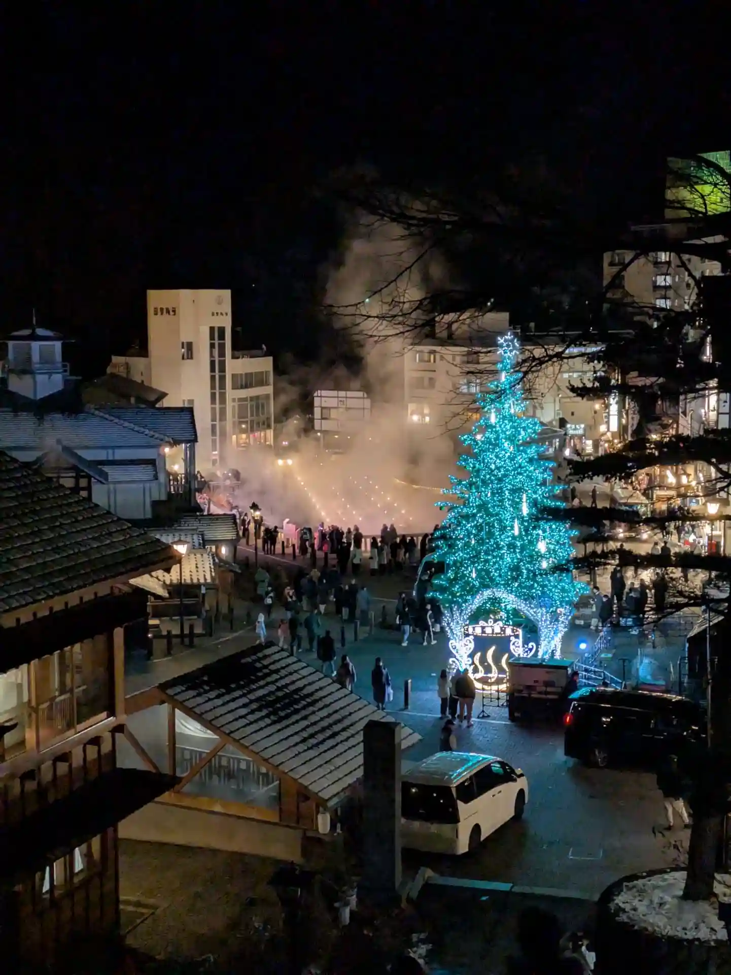ライトアップ。若いカップルが大変多い草津温泉。