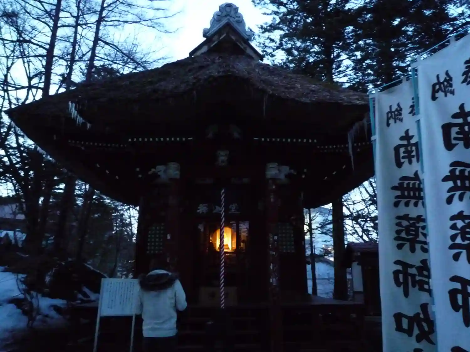 到着した時は雪が降っていたうえ、フリー時間が夜でしたので、お参りは翌日に…