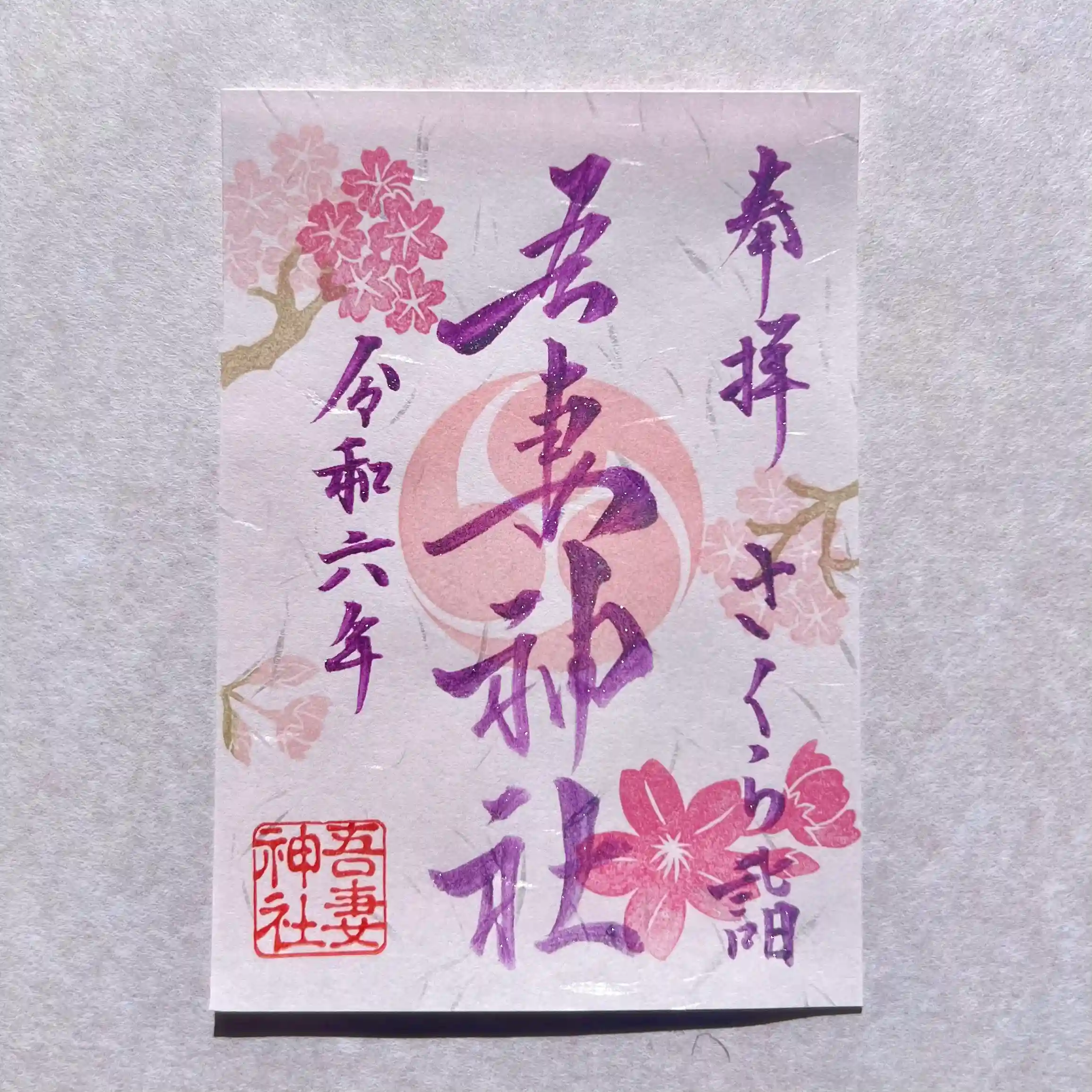 書置きの御朱印は桜色の特別な和紙で奉製されており、上品な御朱印に仕上がりました✨