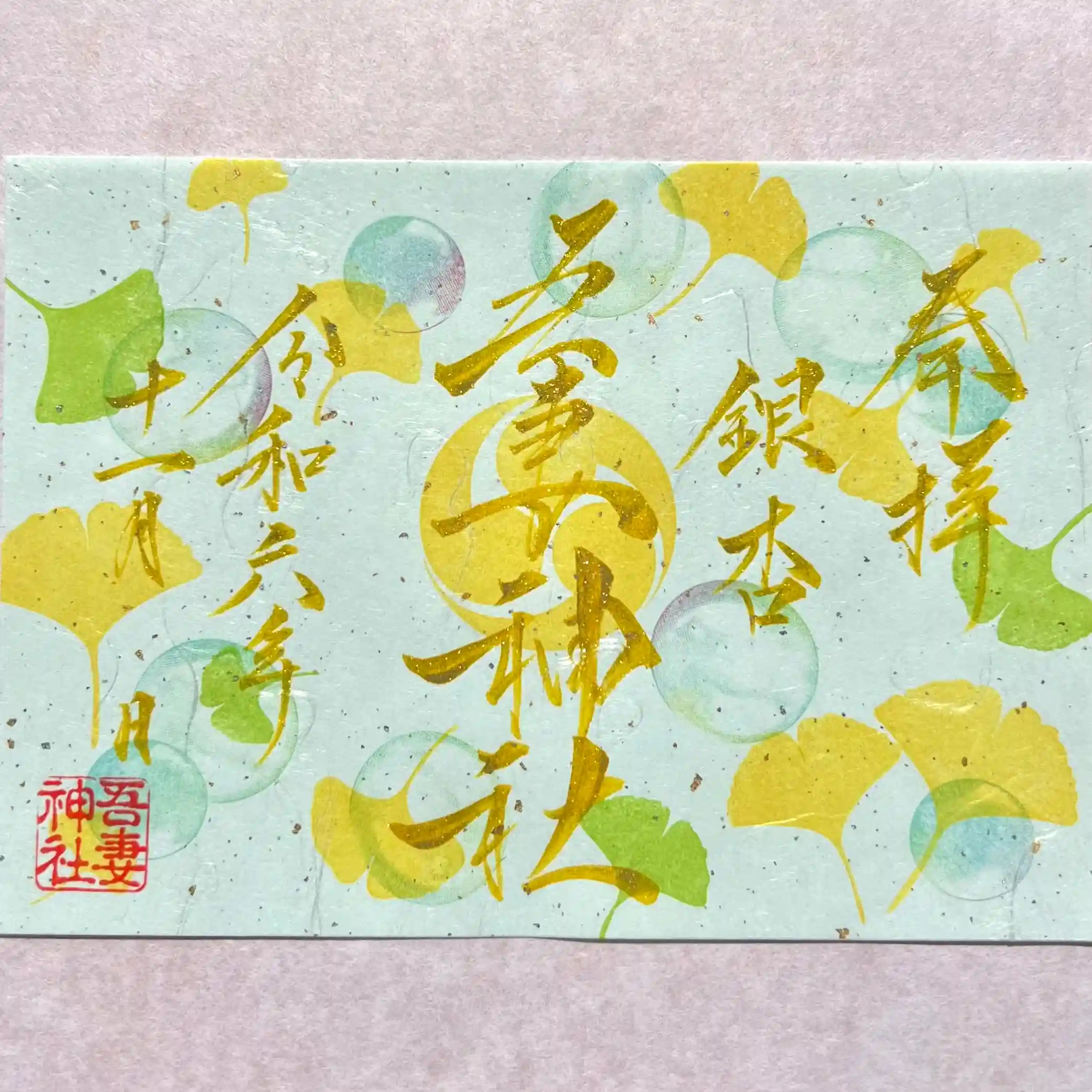 空色の特別な和紙に銀杏とシャボン玉をあしらい奉製いたしました🫧