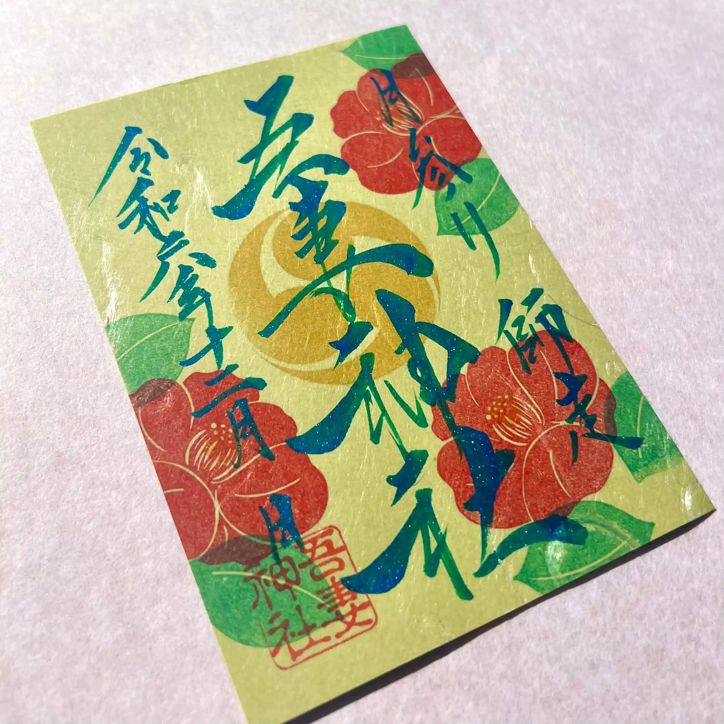 松葉色の特別な和紙に寒椿をあしらい奉製致しました✨