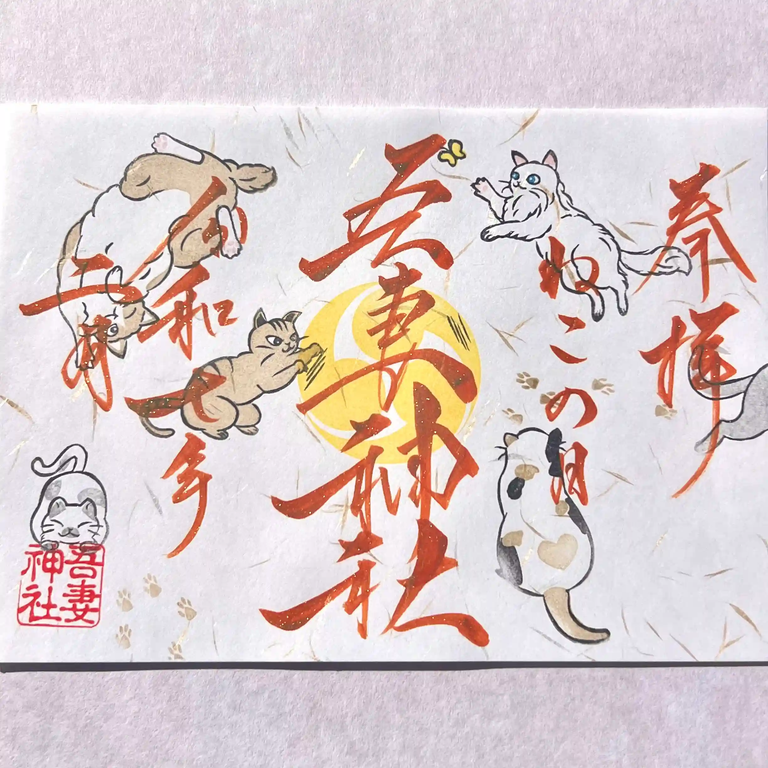 書置きの御朱印は白色の特別な和紙に6匹のねこをあしらい奉製いたしました🐈