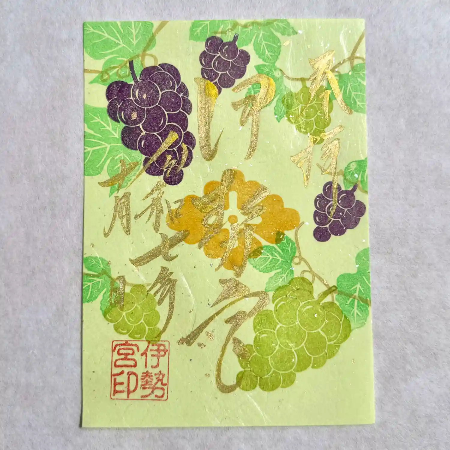 今秋の御朱印は薄緑色の特別な和紙にブドウをあしらい奉製致しました🍇