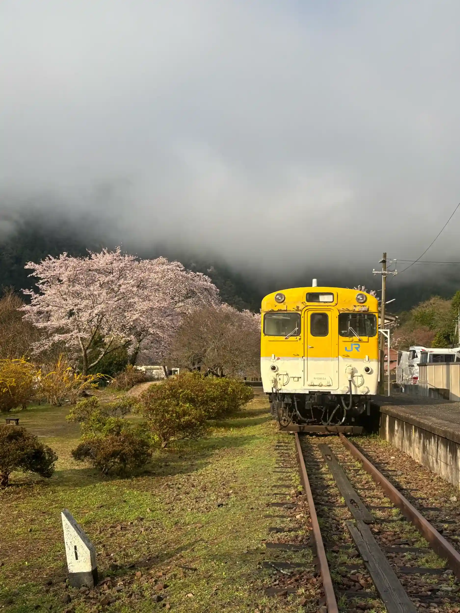 廃線に黄色い電車、素敵ですね😊