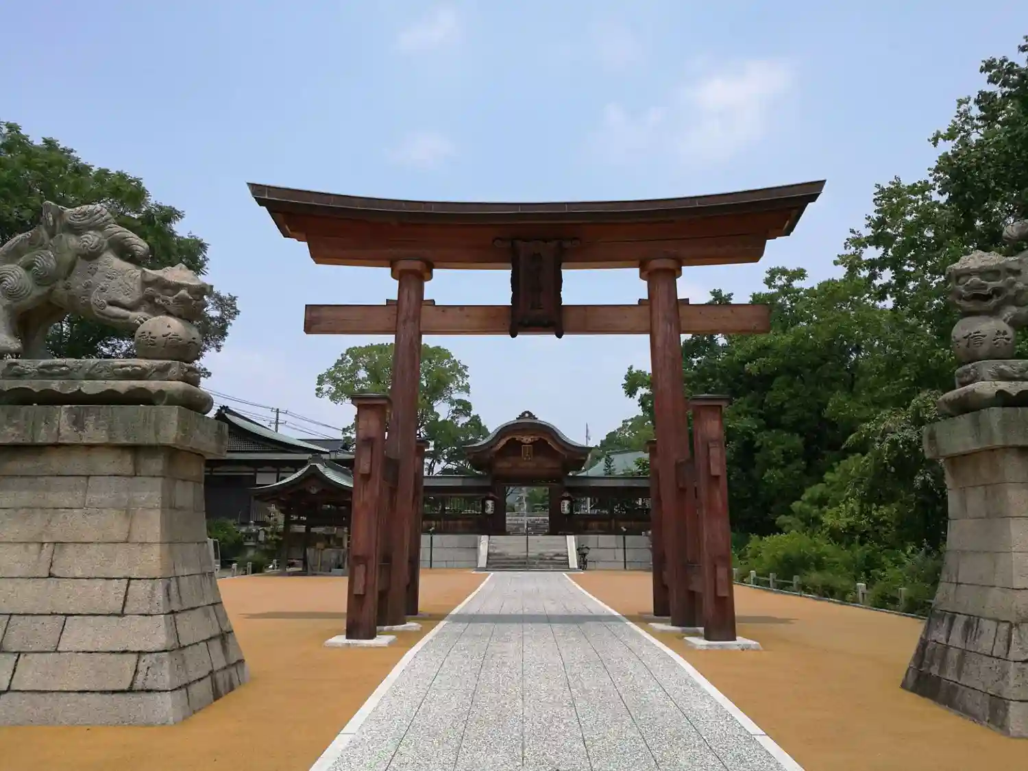 両部鳥居原爆により神社は悉く灰燼に帰したが、400年祭を迎えるに当って、記念事業の一環として、原爆で失われていた宮島型の檜造大鳥居(両部鳥居)を平成17年・60余年振りに復元