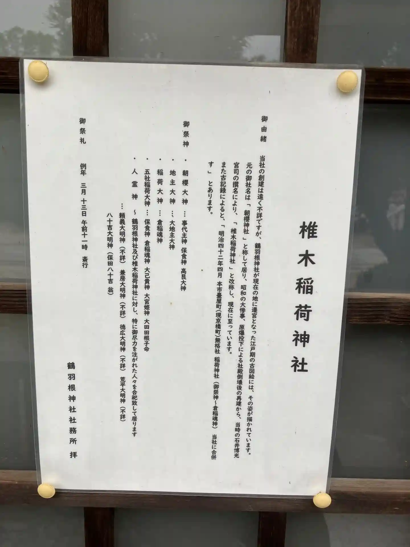 境内社の御由緒書きです。