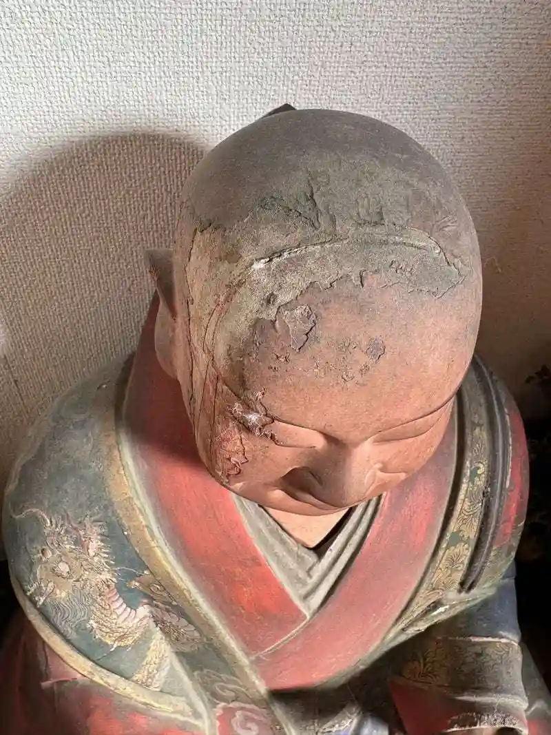 画像をご覧になってご確認いただけると存じますが経年劣化が著しく、本覚寺の護持会費ではもうその費用を賄うことが出来なくなっております。ちなみに日蓮聖人像も経机も戦災を逃れた大切なものです。特に広島市は原爆の被害により残存しているのは珍しいです。