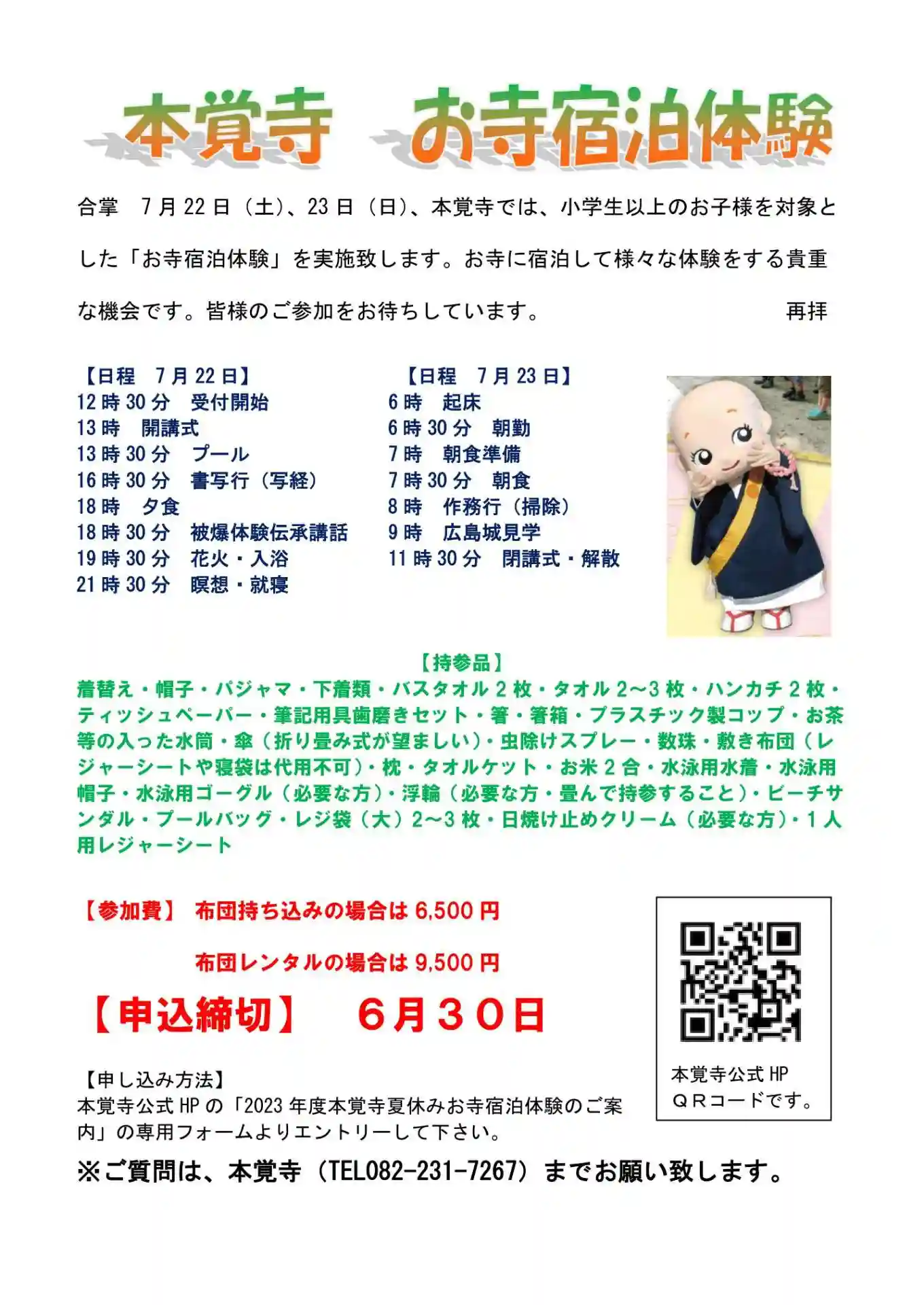 本覚寺の【夏休みお寺宿泊…