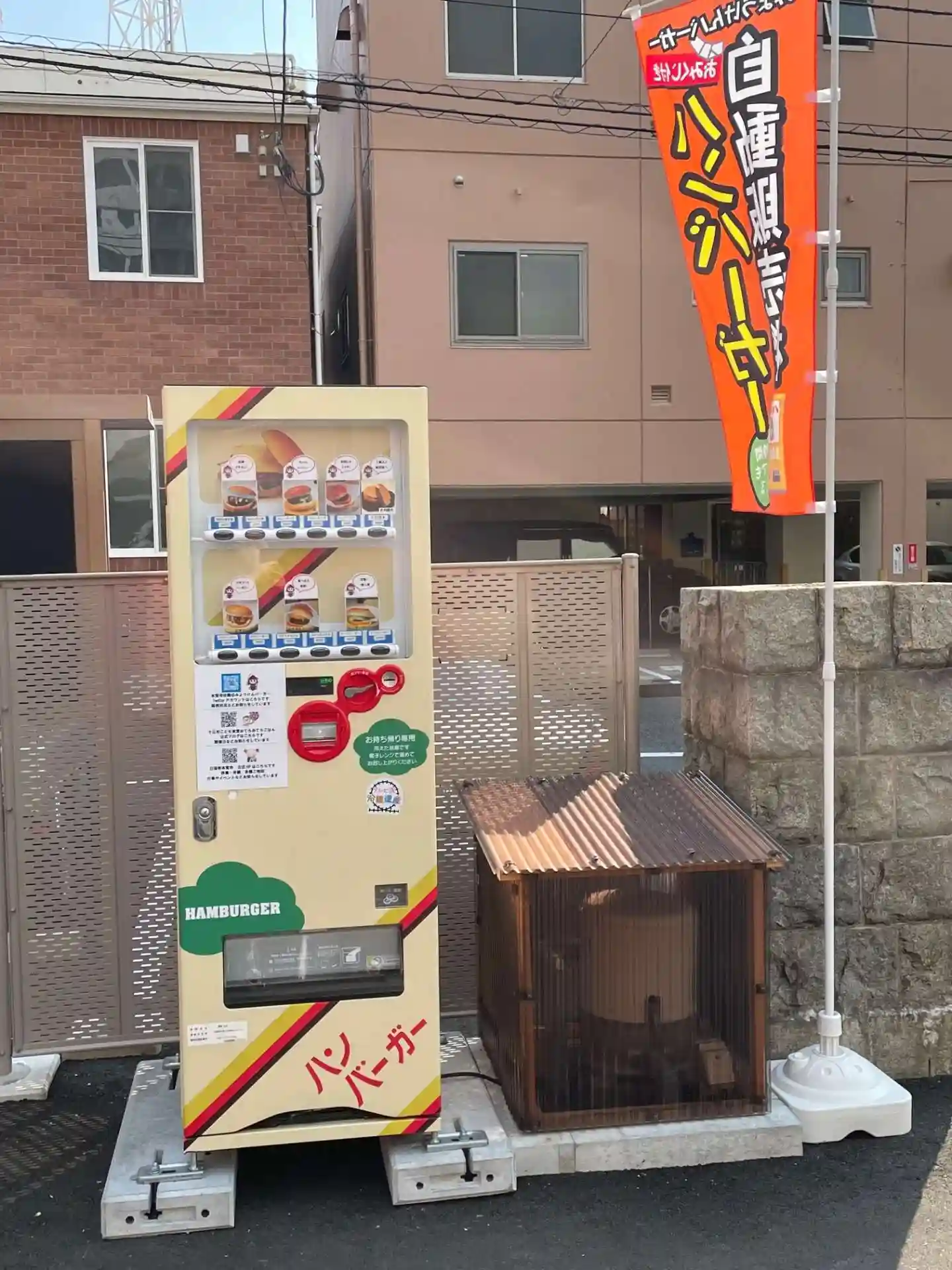 今年1月31日に設置した、「みょうけんバーガー」を販売するハンバーガー自販機について、