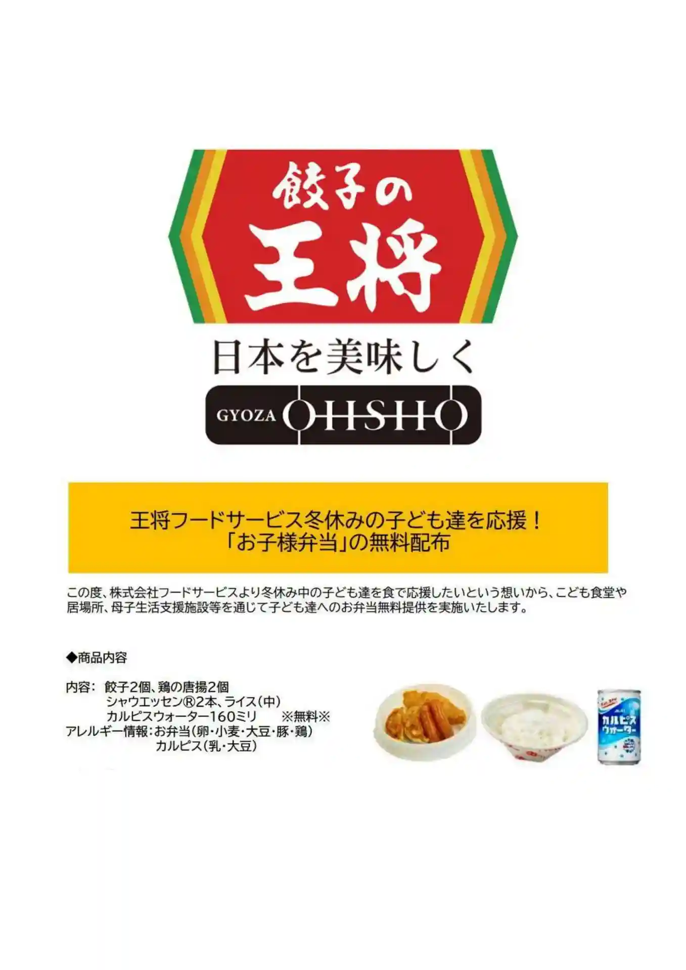 この度、十日市こども食堂おてらごはんに対し、餃子の王将様より無料にて「お子様弁当」を50食提供して…