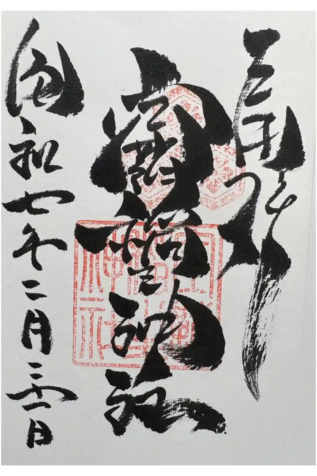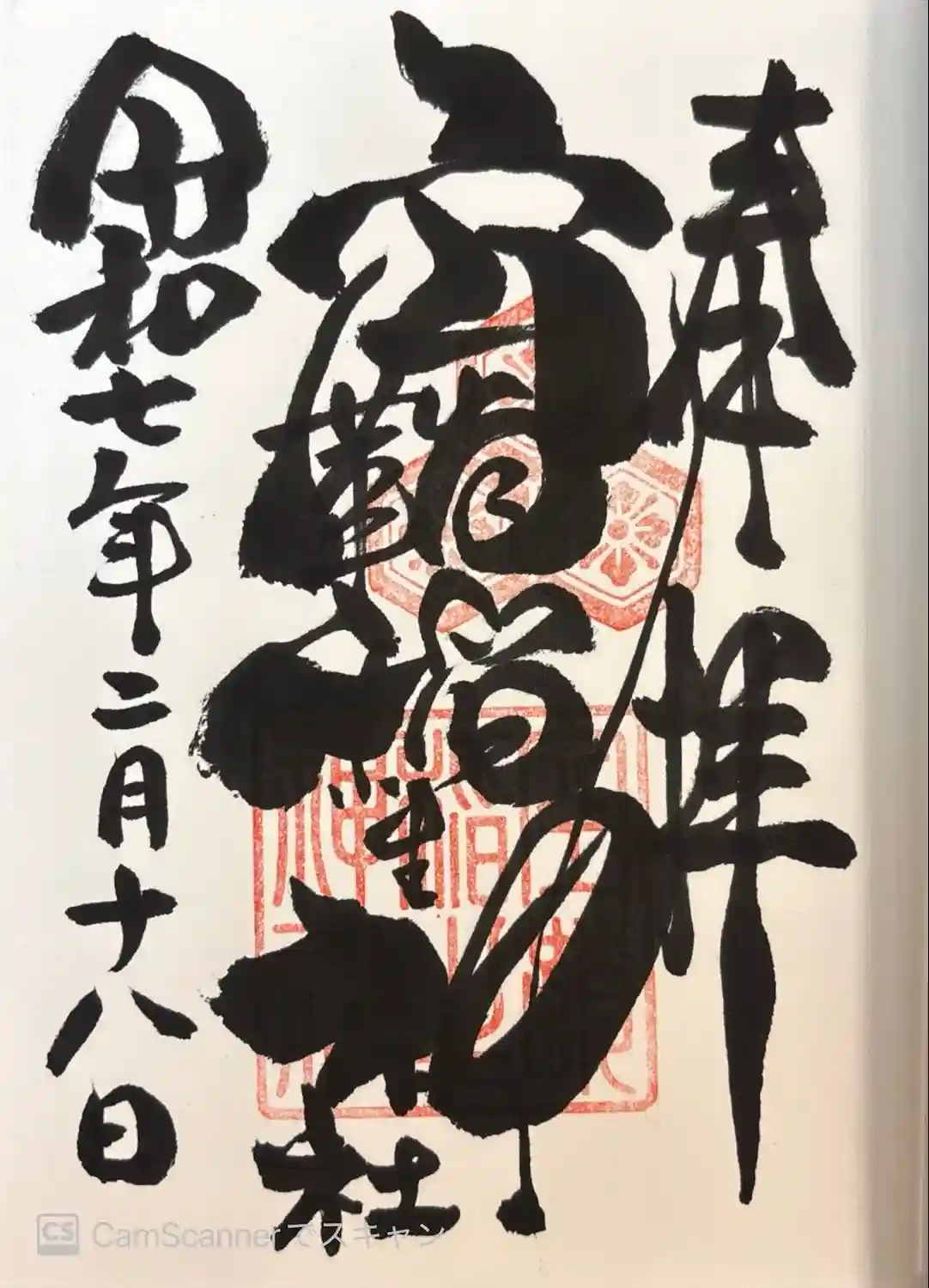 直書きしていただきました。何度見ても素晴らしい!御初穂料500円でした。境内末社3社と境外摂社2社もいただきました。