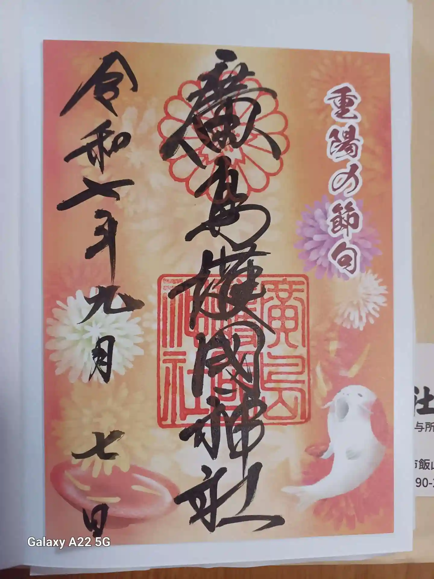 お詣りして、重陽の節句と二十四節気(白露)の特別御朱印をいただきました。