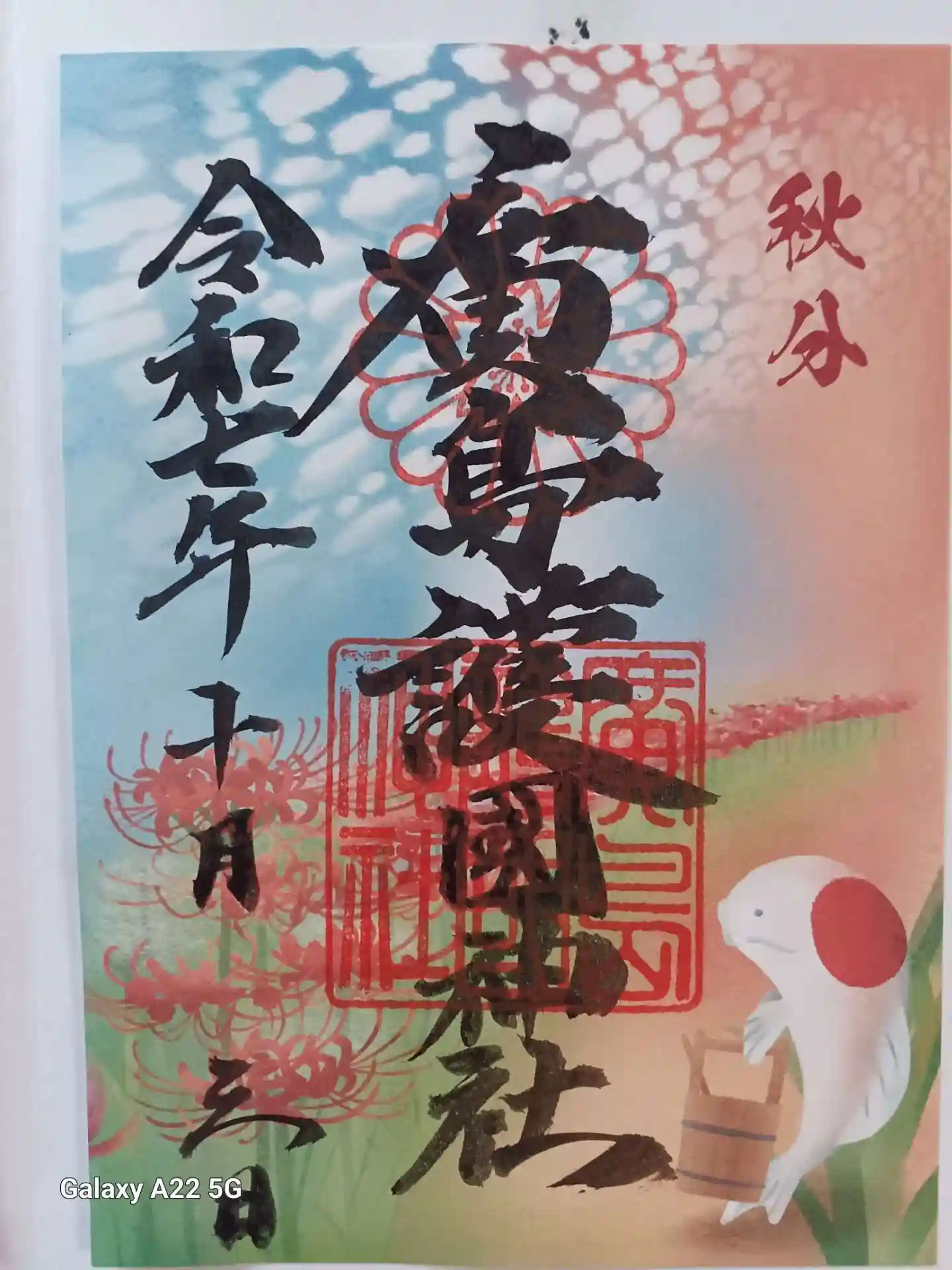 「中秋の名月」限定御朱印が欲しくての参拝です。外国人観光客団体や、七五三写真の方々が、雨降りでも多く居られました。御朱印をお願いする際に、「秋分」限定御朱印もまだありますと言われ、一体我が手にお越しいただきました。