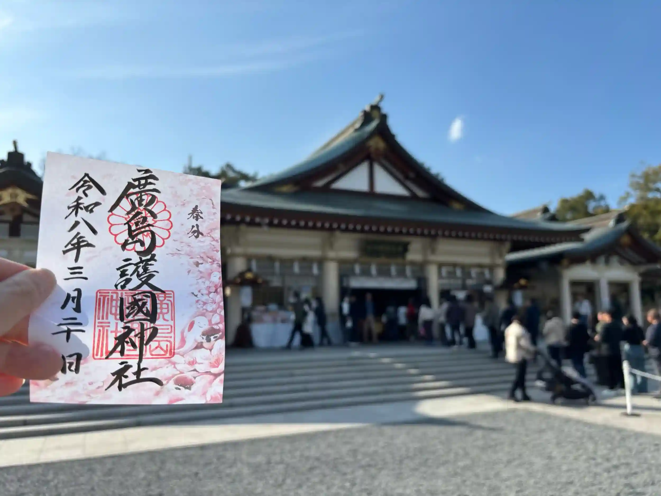 春分の御朱印をいただきました。書き置き700円。イベントやら観光客やらで賑わっていました。さらに広島城天守に22日を最後に入れなくなるということで、入場が規制され、整理券が配られていました。