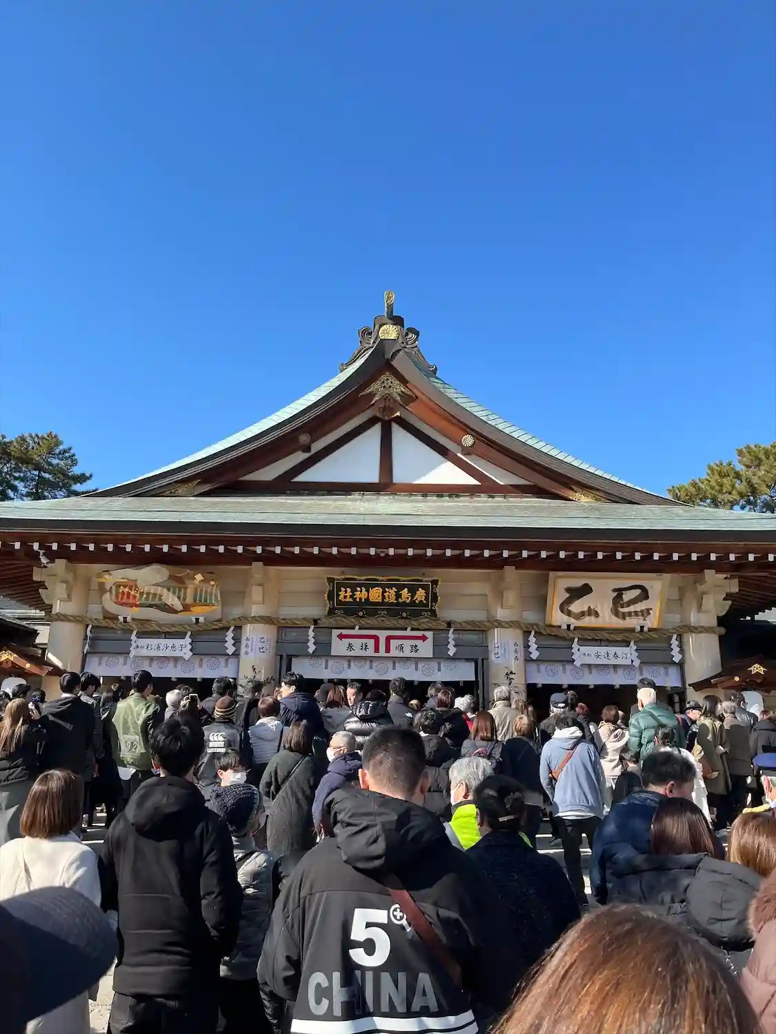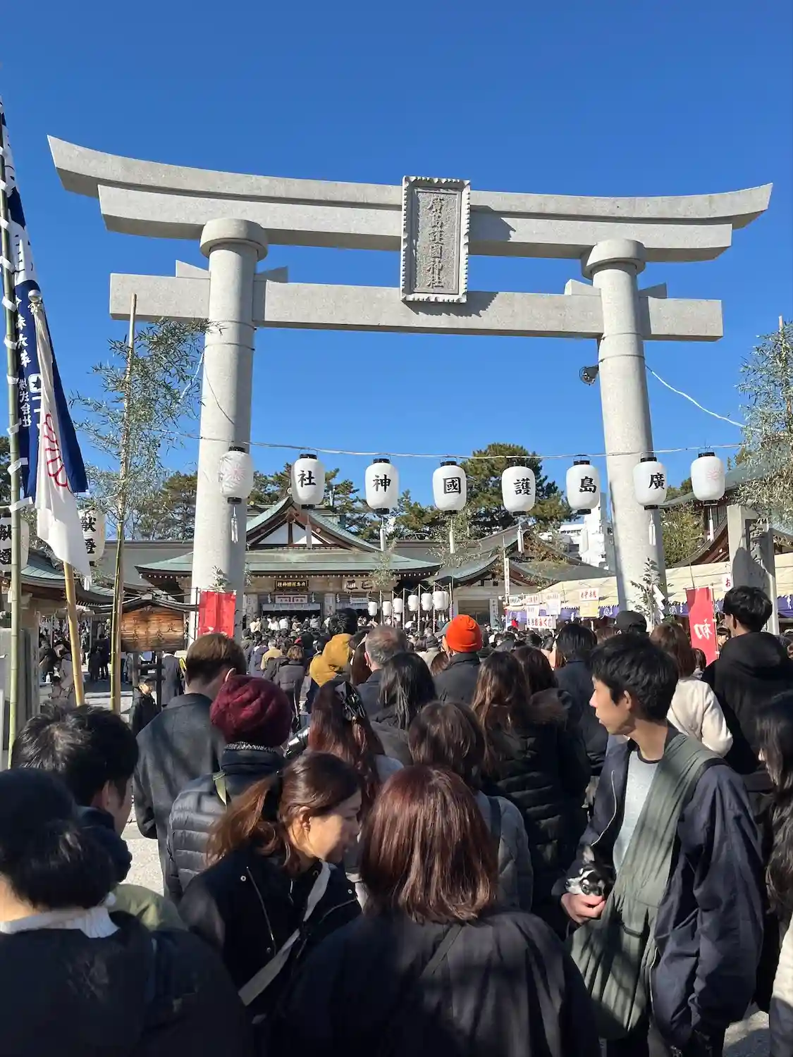家族で初詣。続いては広島県で最も初詣の参拝者が多いこちら。遅めの時間だったので、あまり待つことなく…