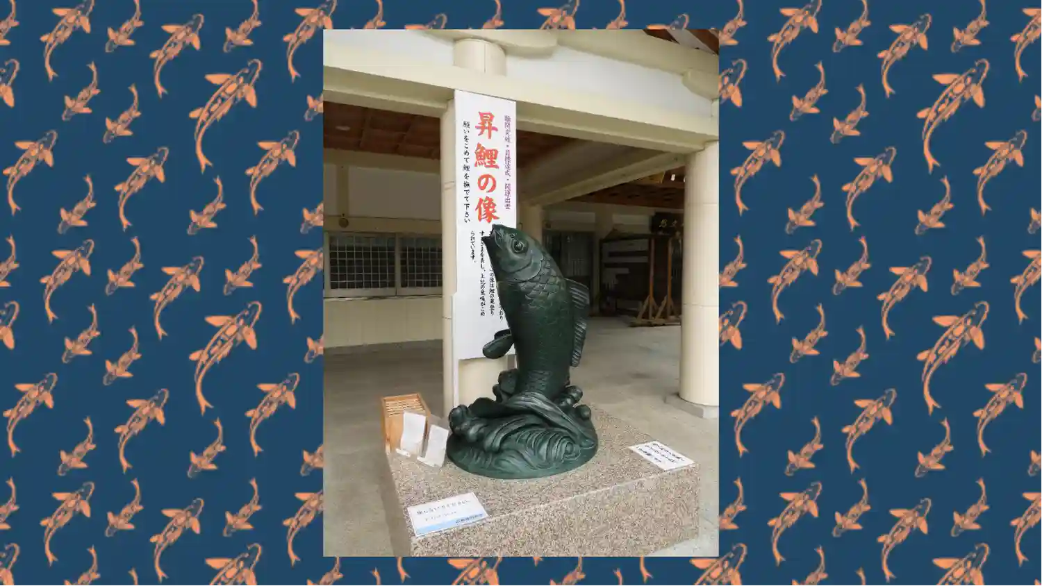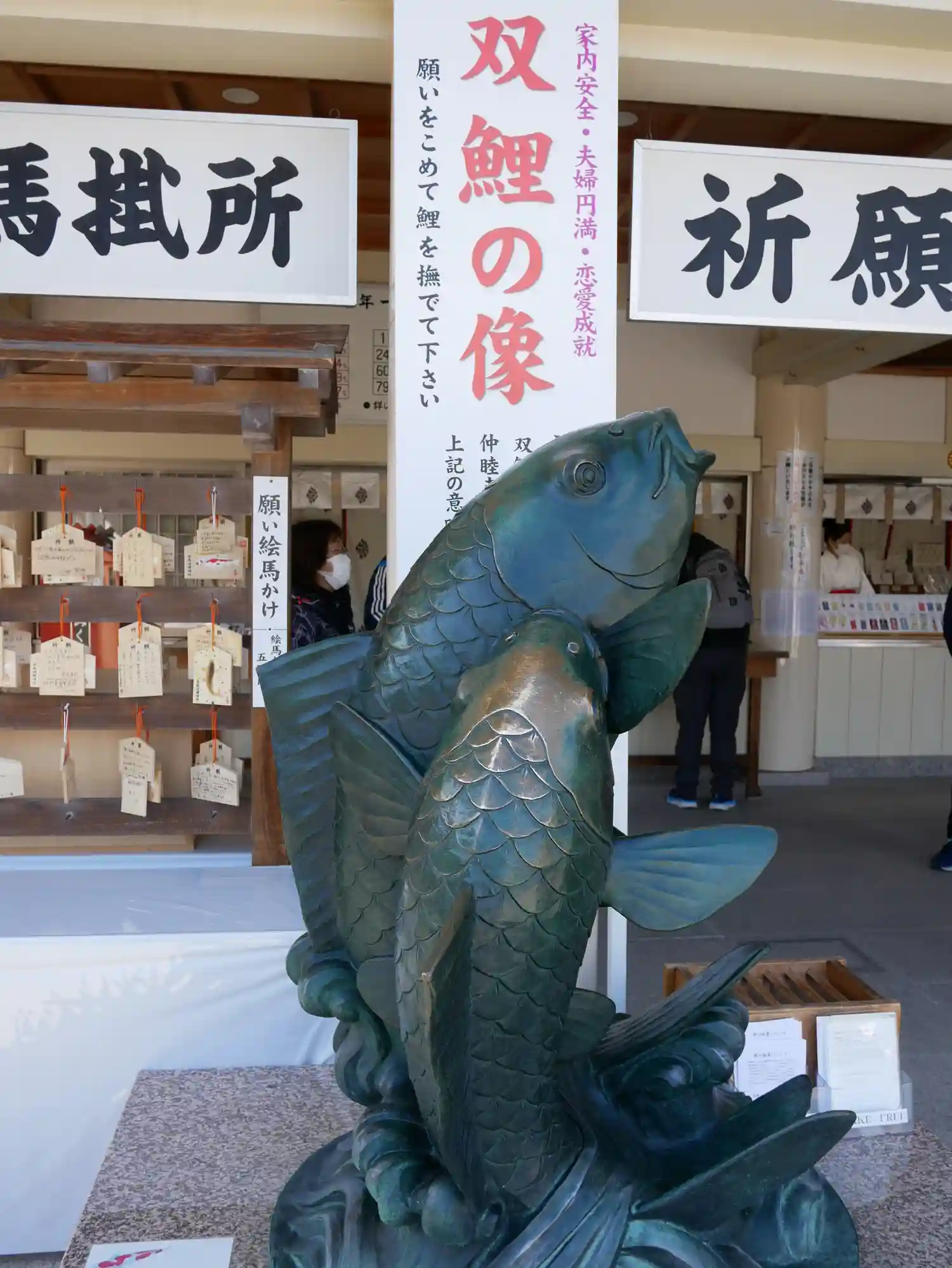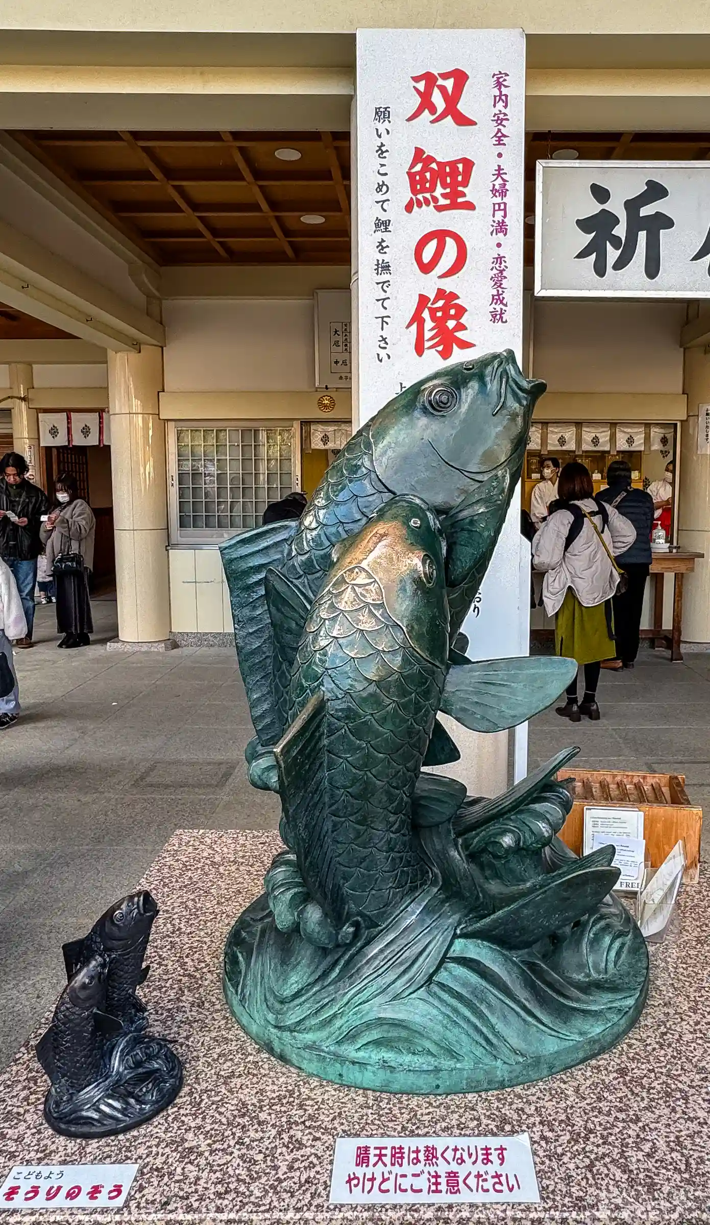 撫でるとご利益ある鯉や鯉みくじがあります。