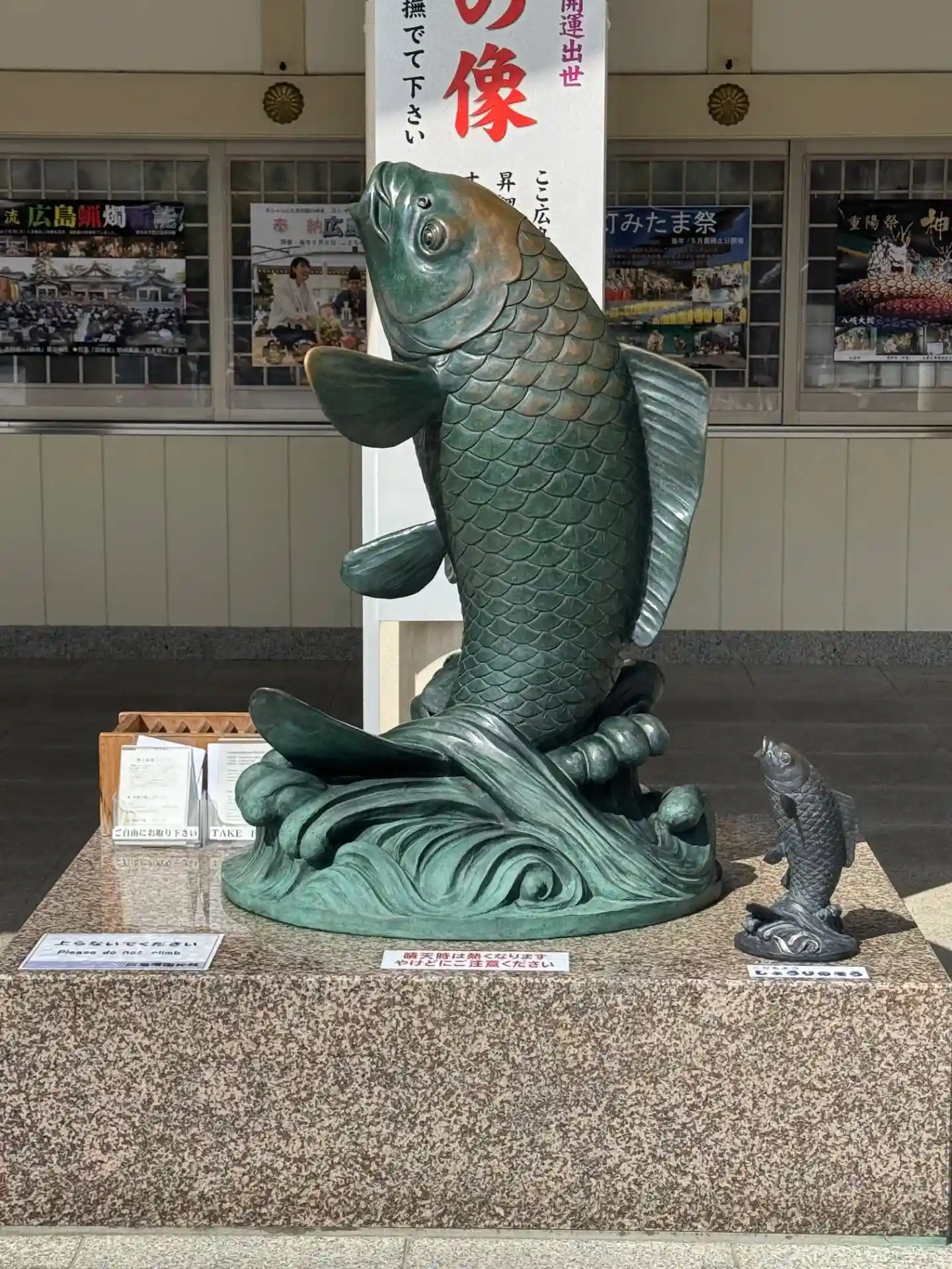 広島城は別名鯉城と呼ばれたことから鯉の像があります