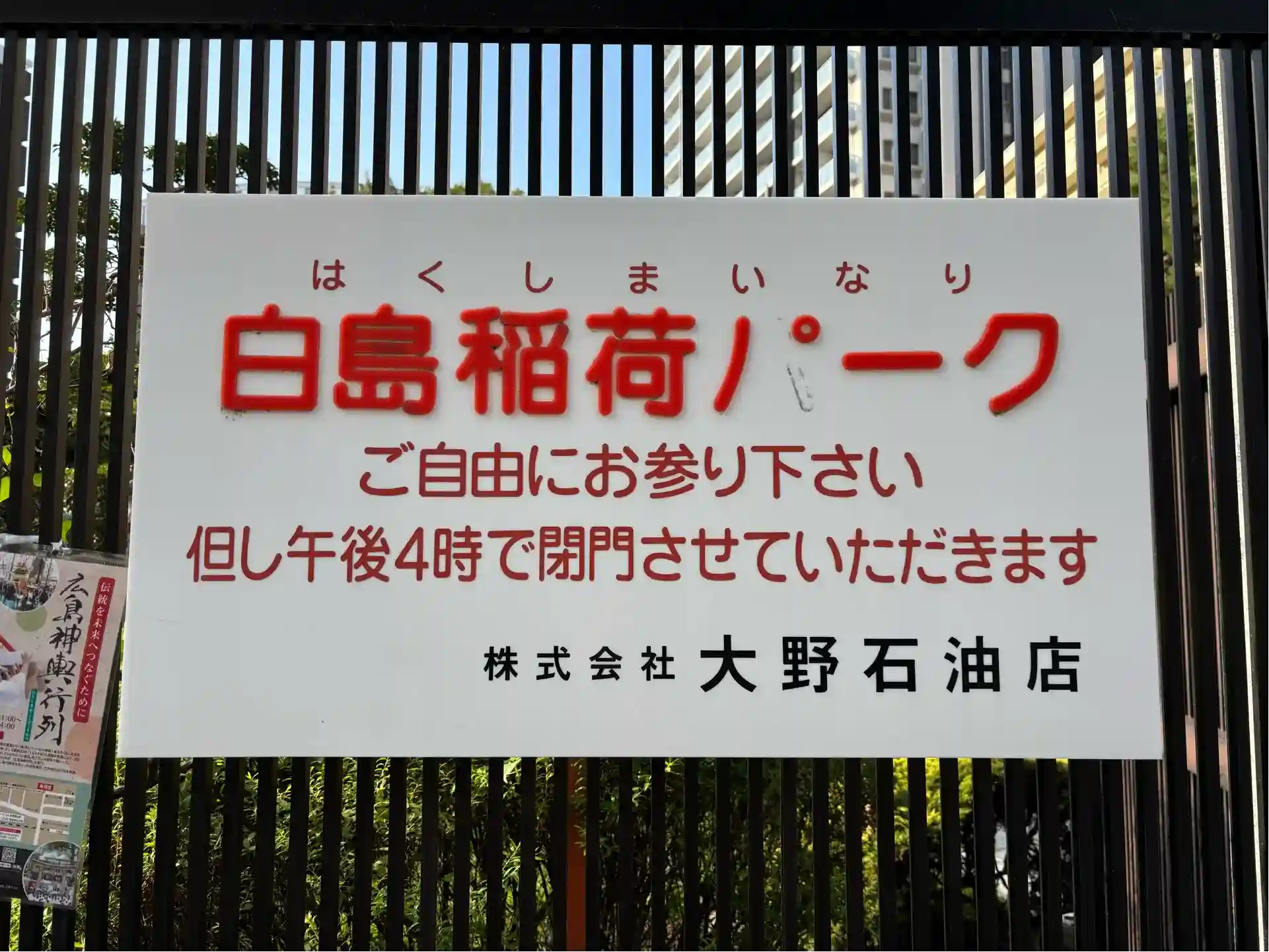 何度も近くを通っていたのですが、参拝は初めて。白島稲荷パークという大野石油が管理している公園です。午後4時閉門だそうです。白猫がいました。