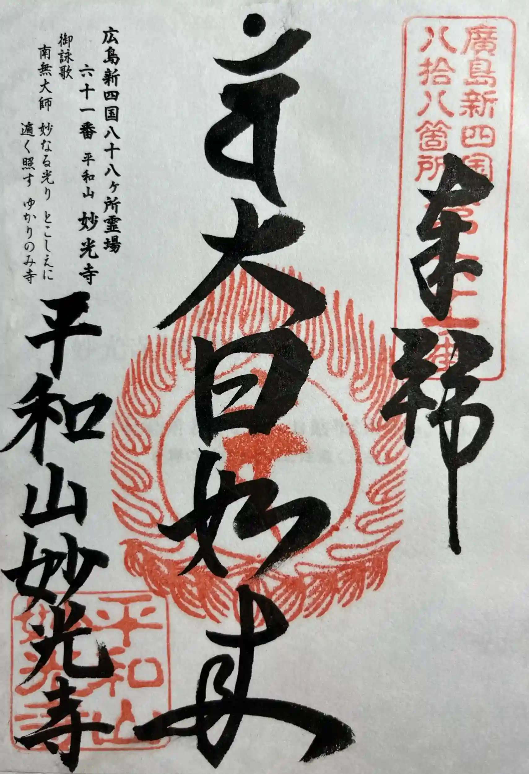 広島御朱印さんぽ①広島新四国八十八ヶ所霊場六十一番所妙光寺へお参り🙏色々教えて頂きつつお経一緒に唱えさせて頂きました🙏